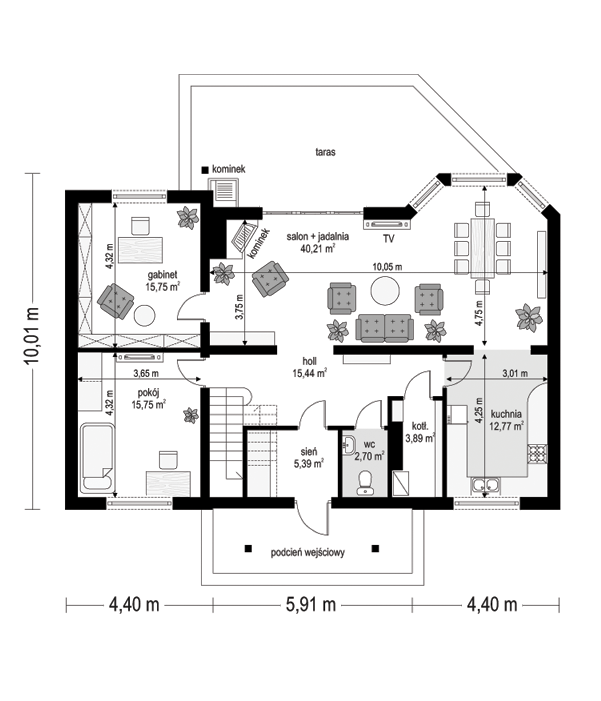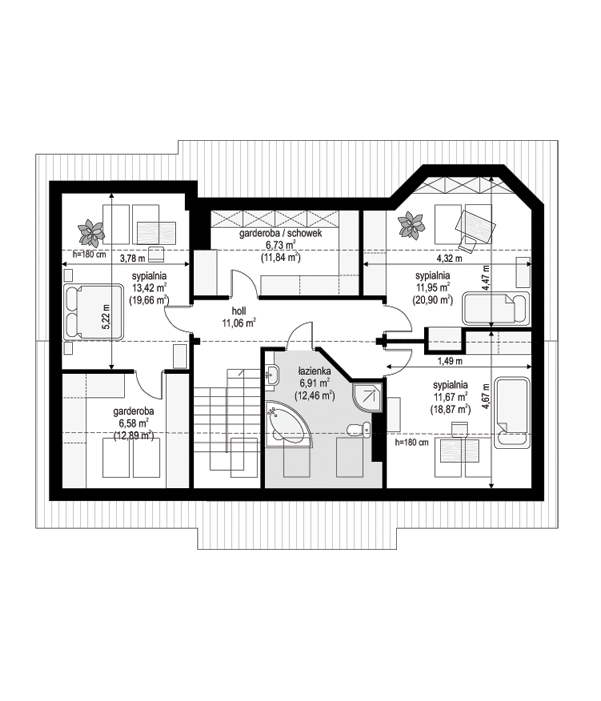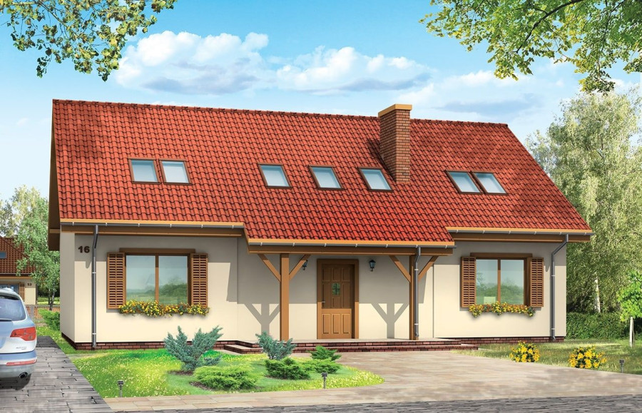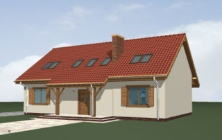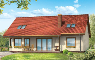 Projekt domu Iskierka jest domem o prostej bryle przykrytej dwuspadowym dachem. Stworzony został z myślą o 4- 5-osobowej rodzinie. Brak okien w elewacjach bocznych pozwala wybudować go na działce o szerokości 20,7 m. Na parterze zaprojektowano duży salon z kominkiem (dodatkowy kominek na tarasie) połączony z jadalnią i dwa pokoje. Na poddaszu Iskierki znajdują się trzy sypialnie z łazienką i garderobą. Konstrukcja domu Iskierka pozwala na zaadoptowanie pokoi na parterze na garaż z pomieszczeniem gospodarczym lub wygospodarowanie dodatkowej łazienki. Pracownia dysponuje również odbiciem lustrzanym projektu domu Iskierka.