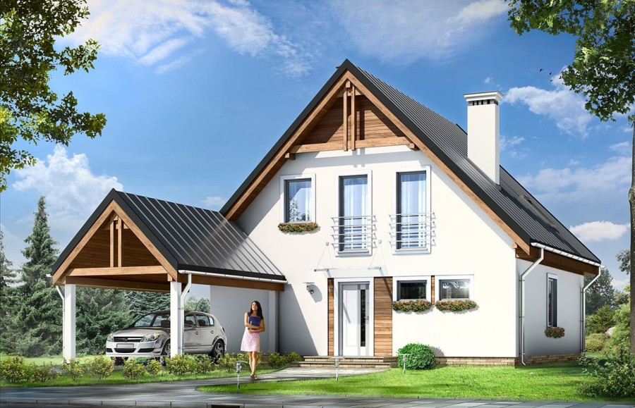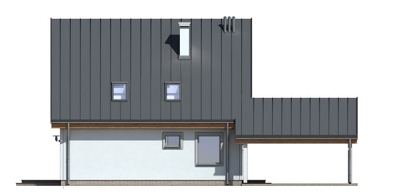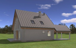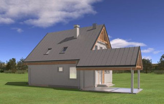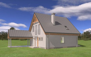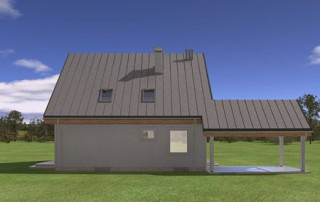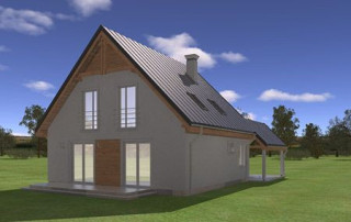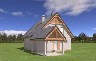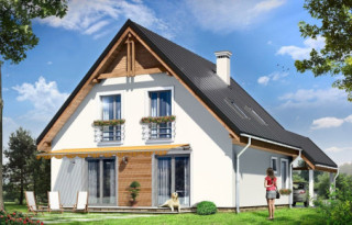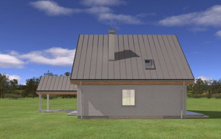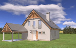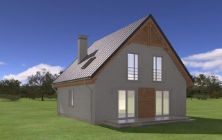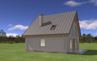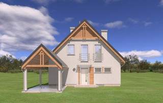 Projekt domu Jaś to parterowy dom jednorodzinny z poddaszem użytkowym, dla rodziny 4- 6-osobowej. Domek zbudowany na planie kwadratu 9,5x9,5 m, przekryty dwuspadowym dachem, z dobudowaną wiatą garażową. Istotą projektu jest prostota bryły w połączeniu z dobrze dobranymi proporcjami i ciekawym detalem. Budynek zaprojektowano w technologii murowanej. Wnętrze domu Jaś podzielono na dzienną część na parterze i sypialnie na poddaszu. Na dole, prócz dużego salonu z aneksem jadalnym, holu i półotwartej kuchni, zaprojektowano dodatkowy pokój - gabinet lub sypialnię, wc z natryskiem, oraz kotłownię. Na poddaszu przewidziano przewidziano trzy wygodne sypialnie i dużą łazienkę. Sypialnia rodziców ma dodatkowo garderobę. W sypialniach dzieci są wbudowane szafy. Przed domem, od frontu zaprojektowano dodatkowo wiatę garażową, którą dość łatwo można zamienić - w razie potrzeby - na garaż. Dom ma prostą konstrukcję, jest łatwy w budowie i będzie niedrogi w późniejszej eksploatacji. Pracownia posiada wersję ze stropem Teriva oraz odbicie lustrzane projektu domu Jaś.