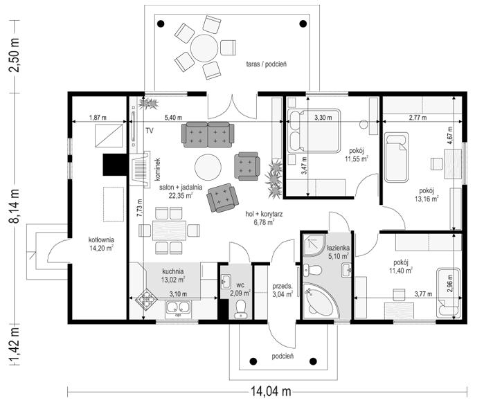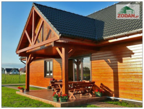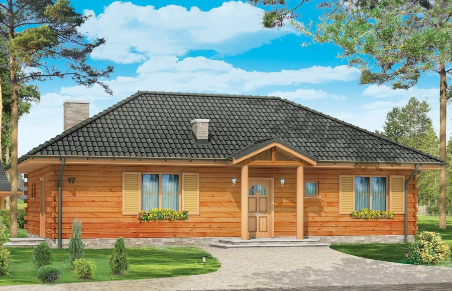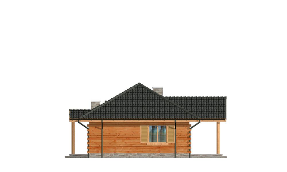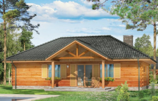 Projekt domu Jaskółka to idealna propozycja zarówno na dom letni, jak i całoroczny. Projekt domku jednorodzinnego Jaskółka z bala litego z wewnętrzną ocieploną wełną mineralną konstrukcją. Budynek Jaskółka zaprojektowany został z myślą o czteroosobowej rodzinie. Architektonicznie domek Jaskółka najlepiej wpasuje się w tereny podmiejskie i wiejskie. Dość prosta bryła przekryta czterospadowym dachem urozmaicona została malowniczym portykiem wejściowym i ogrodową zadaszoną werandą, na której właściciele mogą przesiadywać popołudniami - podziwiając swój ogród. Wnętrze w domu Jaskółka to otwarta część dzienna z przestronną kuchnią, oraz część nocna - bardziej prywatna, z sypialniami domowników. Z boku domu Jaskółka zaprojektowano duże pomieszczenie gospodarcze, przeznaczone na kotłownię. W projekcie domku Jaskółka opcjonalnie przewidziano podpiwniczenie pod pomieszczeniem gospodarczym. Projekt domu Jaskółka, dzięki prostej formie i konstrukcji jest tani w samej budowie jak i późniejszym utrzymaniu. Ten domek jednorodzinny można zamówić również w wersji odbicia lustrzanego.