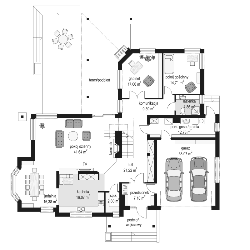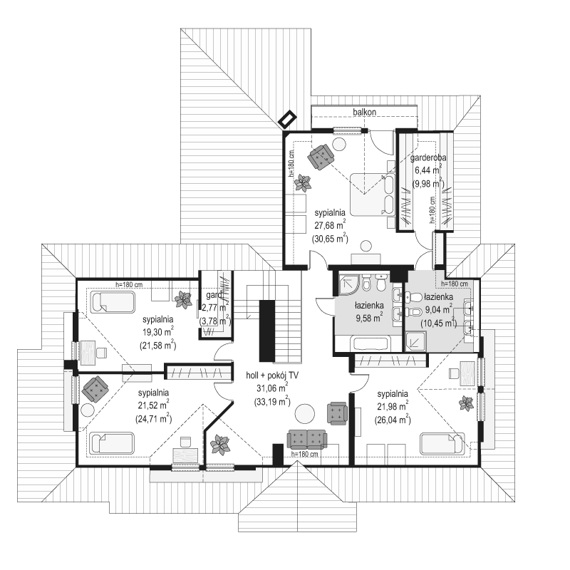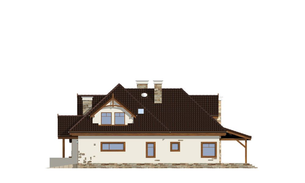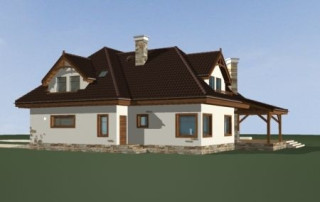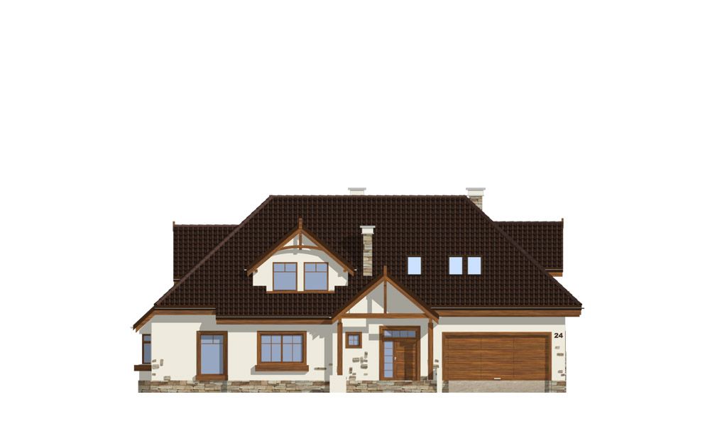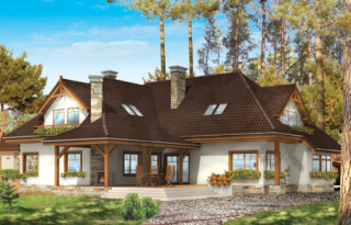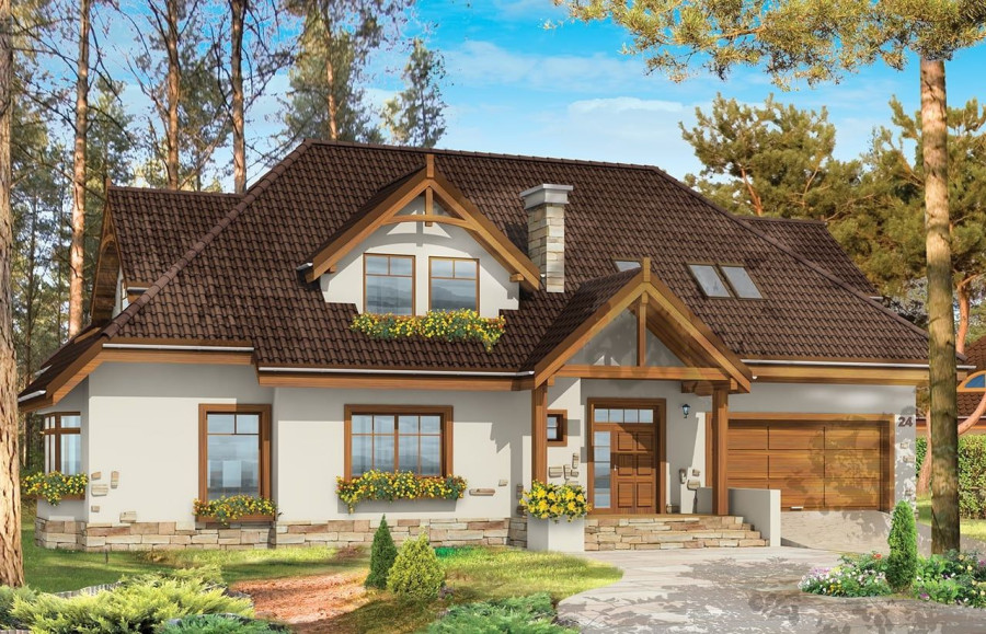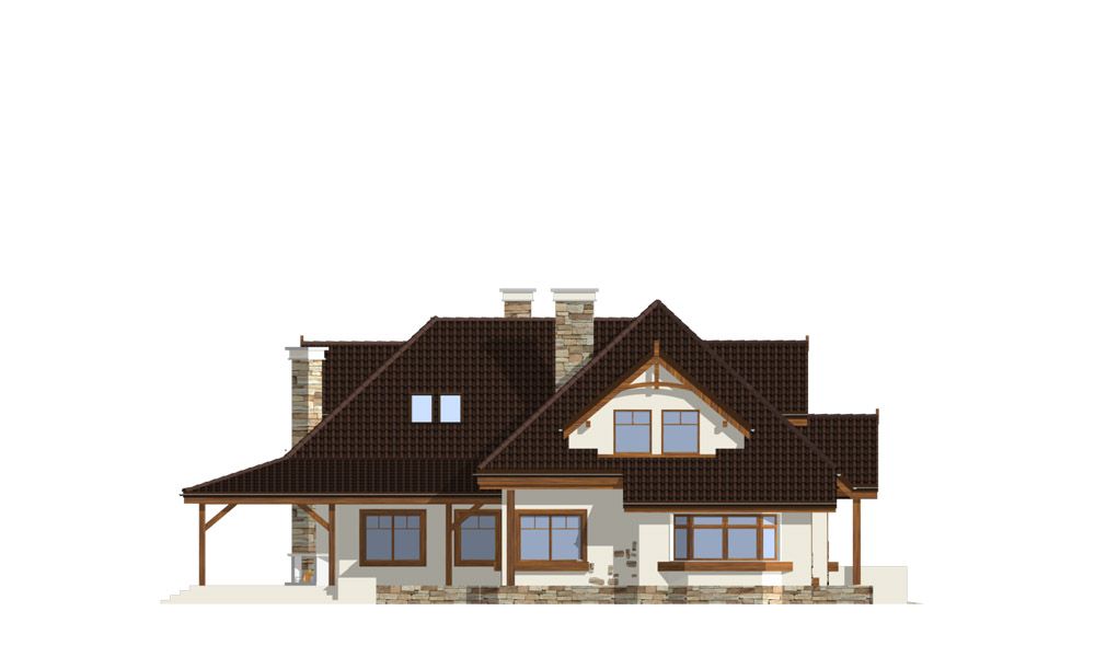 Projekt domu Jesion to duży, komfortowy dom jednorodzinny na ładną działkę. Budynek zaprojektowany został z myślą o rodzinie 4- 7-osobowej, z możliwością wariantowego wygrodzenia mieszkania dla seniorów. Projekt willi zaplanowano w kształcie litery L tak, aby zapewnić maksymalną ochronę i intymność dla dużego, częściowo zadaszonego tarasu. To doskonałe miejsce wypoczynku. Część dzienna składa się z salonu, jadalni, holu i dużej kuchni. W holu zaprojektowano eleganckie schody owinięte wokół centralnej masywnej ściany kominkowej. Na poddaszu oprócz czterech sypialni z łazienkami i garderobami jest również powiększony hol mogący służyć jako bawialnia lub pokój tv. Na zewnątrz w podcieniu ogrodowym zaprojektowano zewnętrzny kominek. Pracownia dysponuje również wersją projektu domu Jesion w odbiciu lustrzanym oraz projekt domu Jesion 2. Sprawdź teraz!