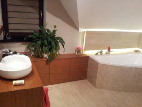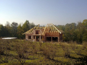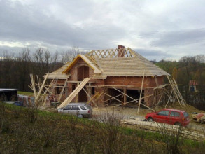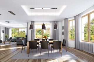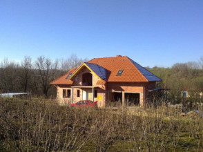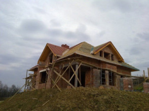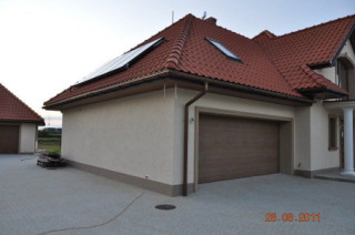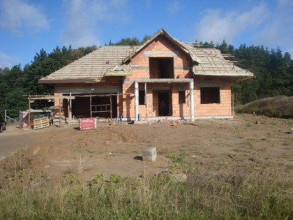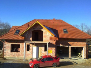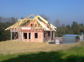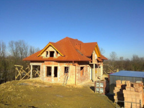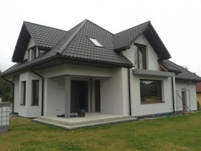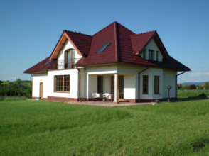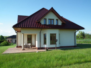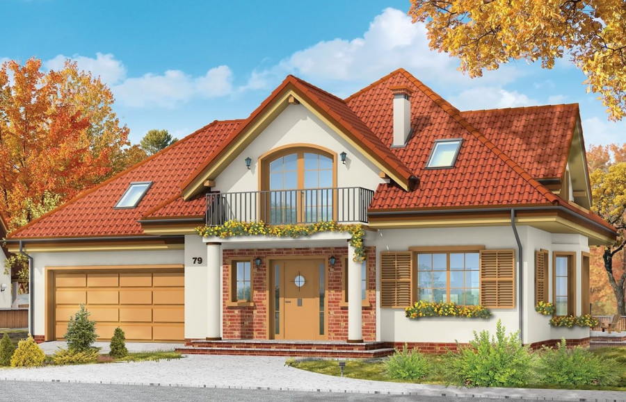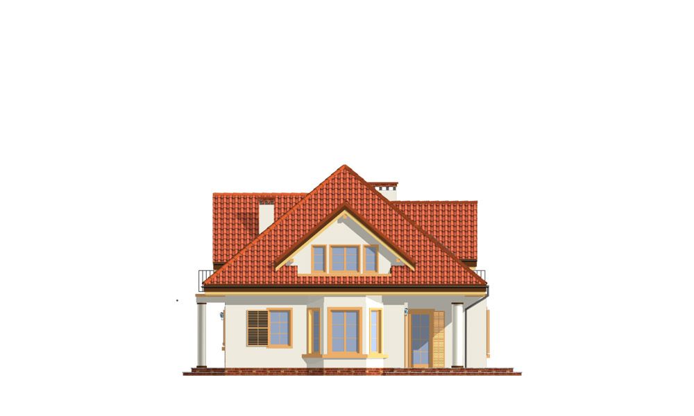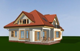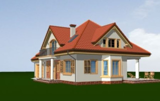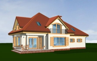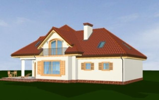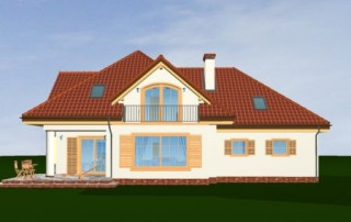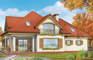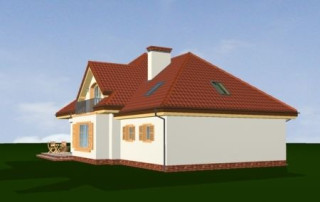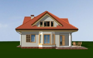 Projekt domu Julka to budynek jednorodzinny parterowy z poddaszem użytkowym dla rodziny 4- 5-osobowej. Projekt domu architektonicznie wzorowany jest na serii popularnych projektów Benedykt. Jest to jednak projekt o mniejszej powierzchni. Wymiary zewnętrzne budynku pozwolą posadowić go na niedużej działce. Mimo niewielkiej powierzchni użytkowej dom jest bardzo funkcjonalny wewnątrz, oraz prezentuje się bardzo dostojnie na zewnątrz. Kopertowy dach Julki z dobudowaną bryłą garażu ozdobiony został szerokimi lukarnami z balkonami. Od strony wejściowej balkon wsparty został na kolumnach tworząc podcień wejściowy, od ogrodu zaprojektowano wykusz z pięknym oknem z salonu. Dodatkowego sznytu domowi dodają wykusz w jadalni, oraz podcień ogrodowy z salonu, wsparty na kolumnie podpierającej narożnik domu. Na parterze zaplanowano pokój dzienny z jadalnią połączony z holem i z częściowo otwartą kuchnią. Reprezentacyjne schody będą stanowiły ozdobę przestrzeni dziennej na parterze. Przy wejściu zaprojektowano dodatkowe pomieszczenie, które może być wykorzystane do celów gospodarczych (wówczas połączone z garażem), lub może być ewentualnie pokoikiem do pracy - gabinetem. W części garażowej znajduje się dwustanowiskowy, wygodny garaż i dwa pomieszczenia gospodarcze w tym kotłownia. W projekcie domu Julka, na poddaszu przewidziano trzy przestronne sypialnie i wygodną łazienkę. Każda z sypialni ma przewidziane ściany z szafami wbudowanymi - można również wygrodzić w nich garderoby. Pracownia oferuje też wersję domu w odbiciu lustrzanym, wersję projektu z garażem jednostanowiskowym (projekt domu Julka 2), wersję przekrytą dachem dwuspadowym (pojekt domu Julka 3), wersję z dachem dwuspadowym i zwężonym garażem (projekt domu Julka 4).
