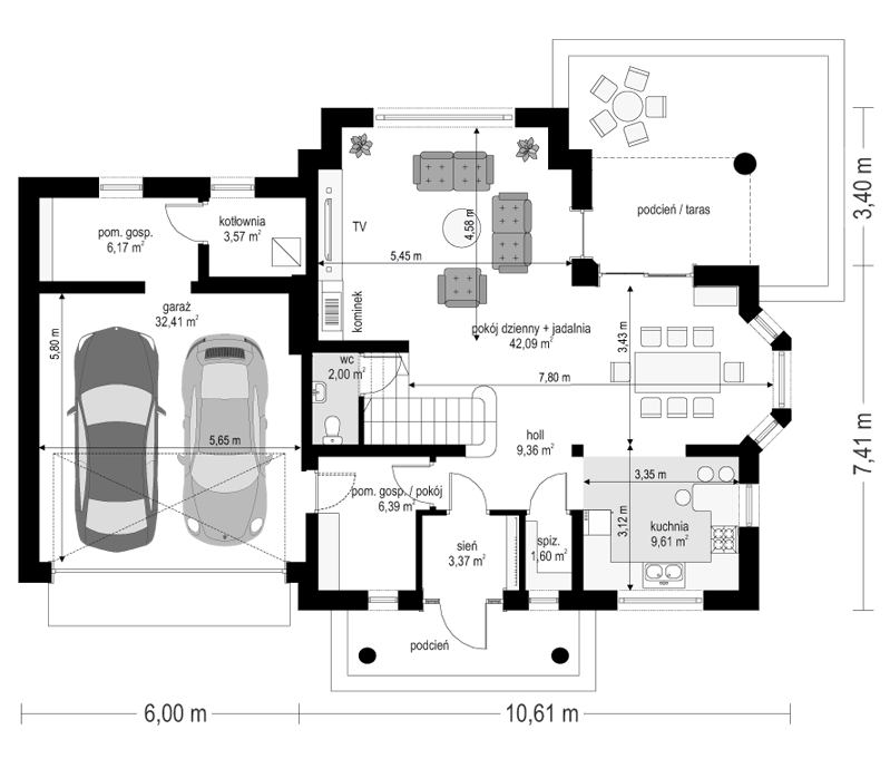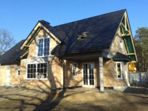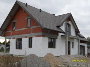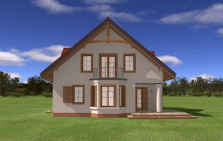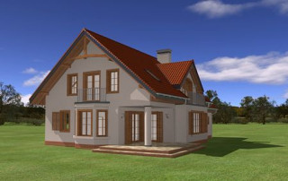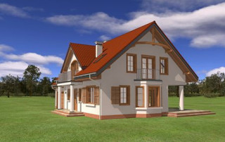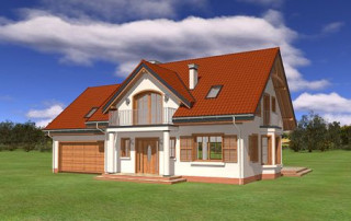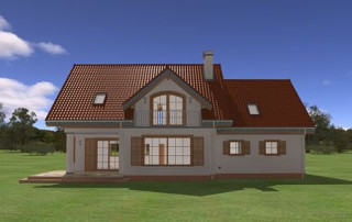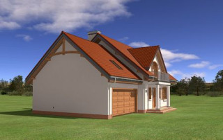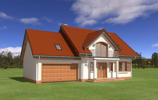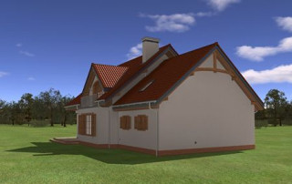 Projekt domu Julka 3 to wersja wariantowa projektu Julka. Budynek o podobnym, jak w wersji podstawowej układzie wnętrz na parterze i poddaszu, ale przekryty dwuspadowymi dachami. Dzięki temu dom będzie można lokalizować na działkach, gdzie przepisy wymagają stosowania dwuspadowych dachów, a zabraniają domów z dachami wielospadowymi. Domek Julka 3, pomimo uproszczenia bryły prezentuje się bardzo atrakcyjnie. W powstałych bocznych szczytach umieszczone zostały dodatkowe okna i balkonik nad wykuszem jadalni. Frontowa i tylna lukarna z balkonami upiększają pozostałe elewacje. Wbudowany w bryłę domu podcień ogrodowy pozwala na korzystanie z tarasu w deszczowe dni. We wnętrzu nadal panuje pierwotny - jak w Julce - podział na przestrzeń dzienną na parterze, z salonem, jadalnią, holem z wyeksponowanymi schodami i częściowo otwartą kuchnią, oraz na sypialnie na poddaszu. W tej wersji projektu sypialnie i łazienka mogą być trochę większe, ponieważ przy dwuspadowym dachu odeszła część "skosów". Również strych nad garażem jest większy i teraz można go z powodzeniem zaadaptować na dwa dodatkowe pokoje. Projekt domu Julka 3 dostępny jest także w odbiciu lustrzanym w wersji bazowej (projekt domu Julka), w nieco mniejszej wersji (projekt domu Julka 2), tańsza w realizacji (projekt domu Julka 4).