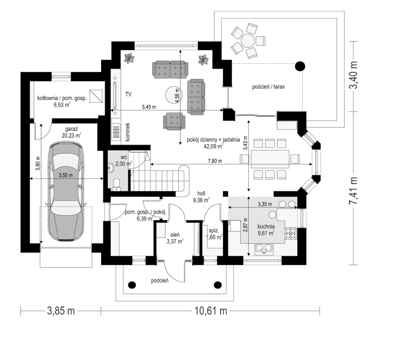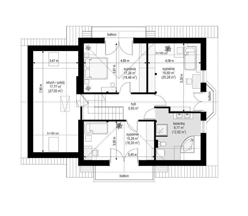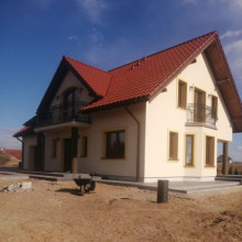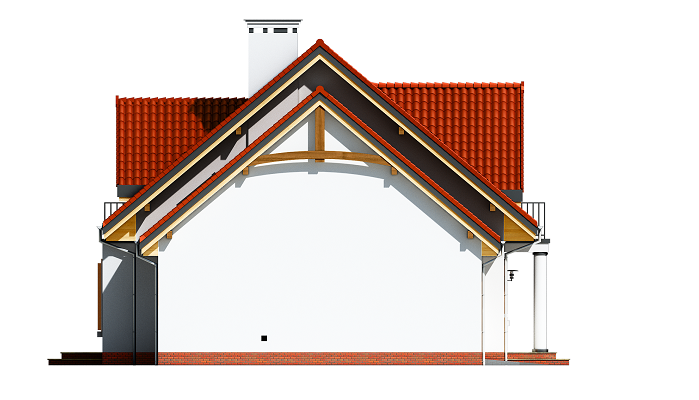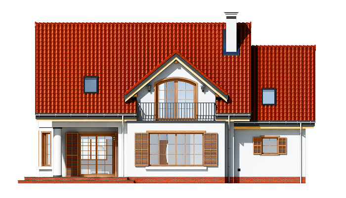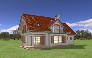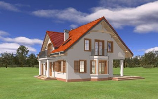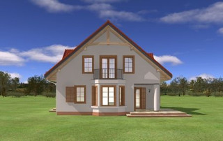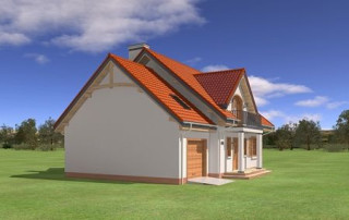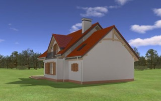 Projekt domu Julka 4 to wariantowa wersja popularnego projektu Julka. Projekt zwężono o część szerokości garażu - zamieniając go na garaż jednostanowiskowy, zmniejszono strych, oraz zmieniono dachy z wielospadowych na dwuspadowe - przekrywające część mieszkalną i garaż. Dzięki temu domek będzie można lokalizować na działkach, gdzie przepisy wymagają stosowania dwuspadowych dachów. Dom Julka 4, pomimo uproszczenia bryły prezentuje się bardzo atrakcyjnie. W powstałych bocznych szczytach umieszczone zostały dodatkowe okna i balkonik nad wykuszem jadalni. Frontowa i tylna lukarna z balkonami uatrakcyjniają pozostałe elewacje. Wbudowany w bryłę domu podcień ogrodowy pozwala na korzystanie z tarasu w dni bardzo słoneczne jak i deszczowe. We wnętrzu zachowany jest pierwotny - podobnie jak w projekcie podstawowym - podział na przestrzeń dzienną na parterze, z salonem, jadalnią, holem z wyeksponowanymi schodami i częściowo otwartą kuchnią, oraz na sypialnie na poddaszu. W tej wersji projektu sypialnie i łazienka mogą być trochę większe, ponieważ przy dwuspadowym dachu wyeliminowana została część "skosów". W projekcie domu Julka 4 również strych nad garażem jest większy niż w Julce 2. Pracownia posiada wersję odbicia lustrzanego projektu, wersję podstawową (projekt domu Julka), komfortową (projekt domu Julka 2), wersję z większym garażem (projekt domu Julka 3).