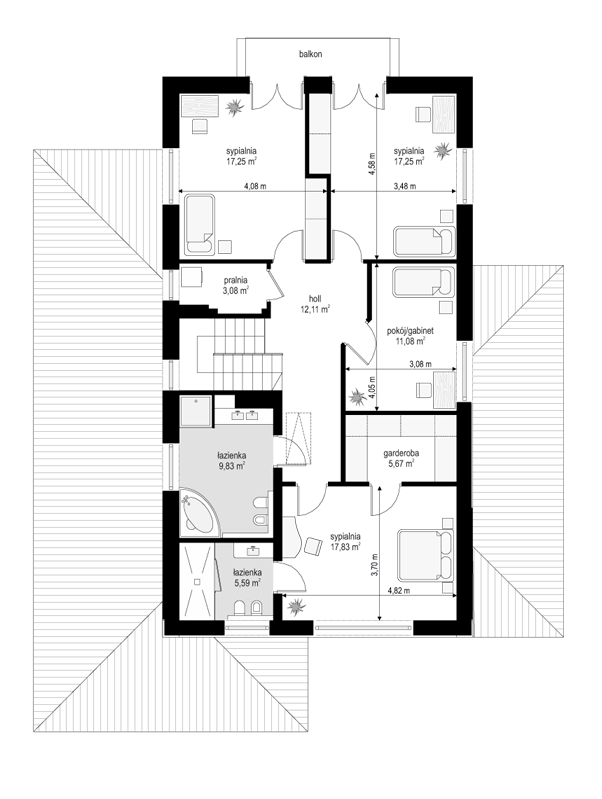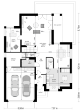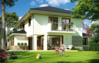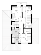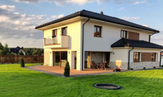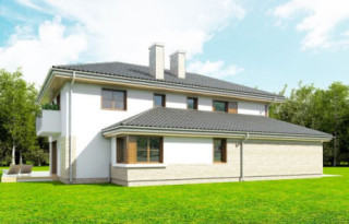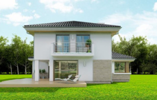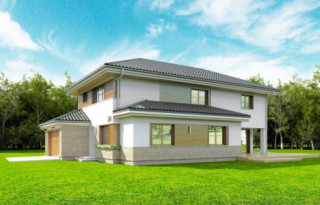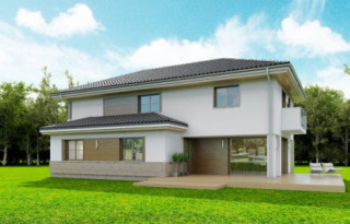 Projekt domu Kasjopea 5 jest wariantową wersją popularnego projektu Kasjopea. Dom został znacznie powiększony i stał się komfortową piętrową willą, z podwójnym garażem. Piętrowy podłużny rdzeń domu przekryty czterospadowym dachem otoczony jest parterowymi przybudówkami. Cała bryła ma urozmaicony kształt, dodatkowo wzbogacony dużymi przeszkleniami, okładzinami ścian, wykuszami i podcieniami. Całość tworzy nowoczesny, acz stonowany wygląd zewnętrzny. Wnętrze budynku podzielono na część dzienną na parterze i sypialnie na piętrze. Parter to przede wszystkim połączone salon, jadalnia i hol. Wyeksponowane reprezentacyjne schody, kominek, narożne okno balkonowe na taras i podcień – to elementy podnoszące atrakcyjność wnętrza. Duża kuchnia z dodatkowym kątem śniadaniowym i spiżarnią jest częściowo otwarta na jadalnię i hol. Na parterze miejsce znalazł też dodatkowy pokój-gabinet, lub sypialnia gościnna, oraz dwustanowiskowy garaż i kotłownia. Na piętrze przewidziano aż cztery pokoje, w tym sypialnię rodziców z oddzielną łazienką i garderobą, dużą ogólnodostępną łazienkę i pralnię. Dla domowników dodatkowo do dyspozycji są strychy - nad piętrem, oraz nad garażem i kotłownią. Projekt domu Kasjopea 5 to prawdziwa twierdza wśród projektów z tej serii - zawiera w sobie wszystkie pomieszczenia jakich można tylko wymagać od dużego komfortowego domu. Dom jest jednocześnie energooszczędny. Ma świetne izolacje, a zastosowane w nim nowoczesne technologie zmniejszają koszty utrzymania domu. Projekt dostępny jest w odbiciu lustrzanym oraz kilku wersjach: podstawowa (projekt domu Kasjopea) i jej wersja odświeżona (projekt domu Kasjopea 8), bliźniak (projekt domu Kasjopea 2), ze zmienionym układem pomieszczeń (projekt domu Kasjopea 3), pomniejszona (projekt domu Kasjopea 4), największa (projekt domu Kasjopea 6), z nowocześniejszą architekturą (projekt domu Kasjopea 7) oraz z wyższym kątem nachylenia dachu (projekt domu Kasjopea 7 B).