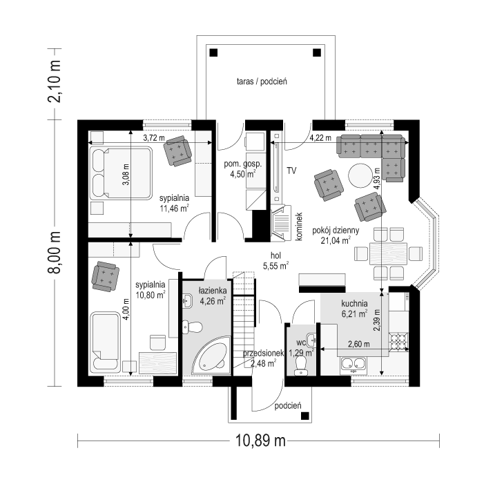 Projekt domu Klejnot to nieduży budynek dla trzyosobowej rodziny lub młodego małżeństwa z małymi dziećmi. Może być również użytkowany jako dom letniskowy. Prosta bryła domu bez udziwnień umożliwia łatwą i tanią budowę. Dobrane ze smakiem detale architektoniczne sprawiają przy tym, że przyjemnie się na domek patrzy. Wnętrze zaprojektowano z podziałem na strefy: dzienną i nocną. Pracownia posiada odbicie lustrzane projektu domu Klejnot.
