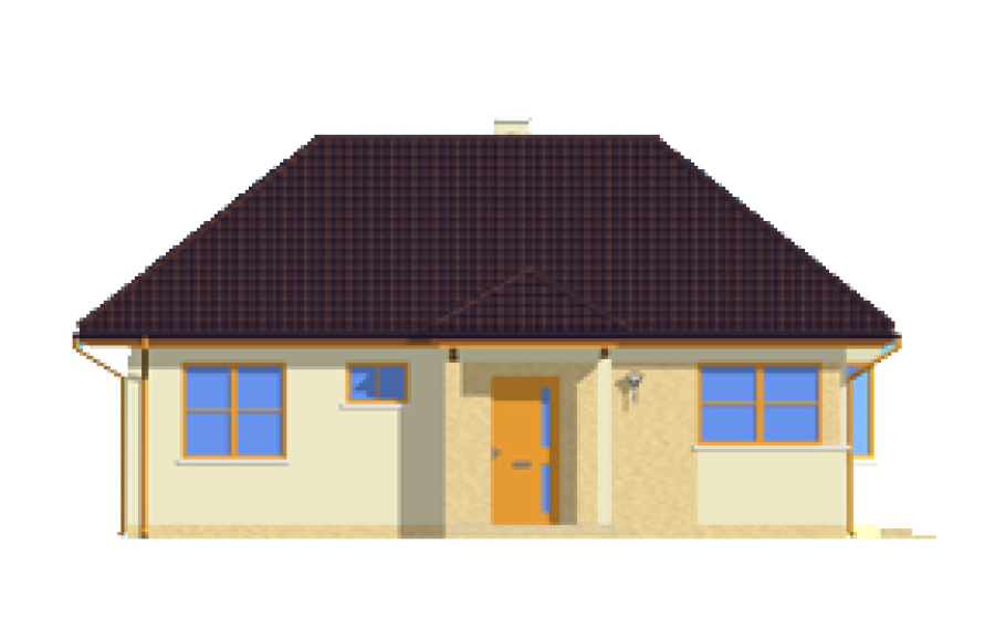 Wariant ze ściętym narożnikiem salonu, z podcieniem w ściętym narożniku.