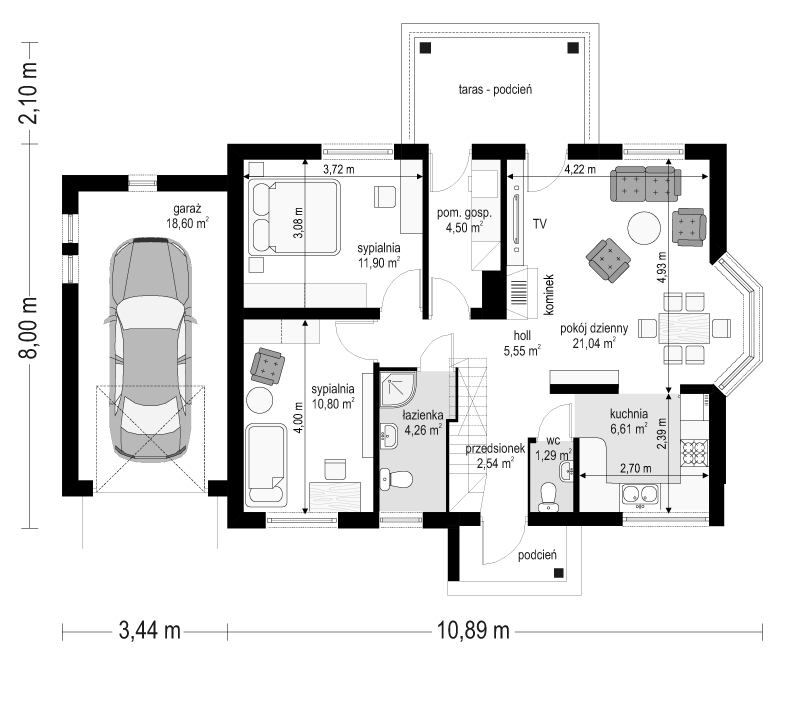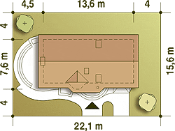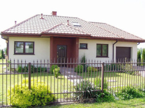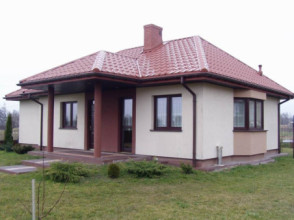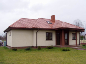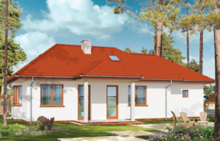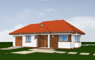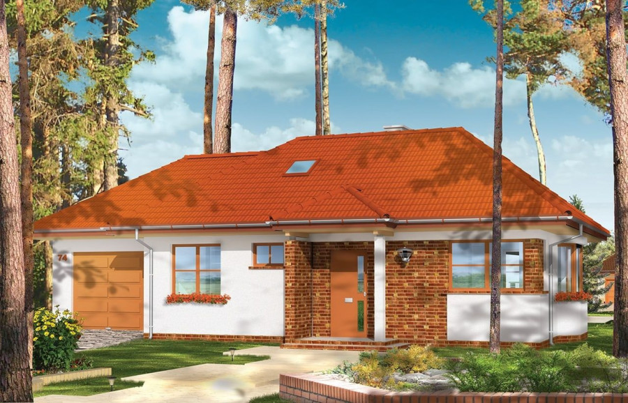 Projekt domu Klejnot z garażem to nieduży jednorodzinny dom dla trzyosobowej rodziny lub młodego małżeństwa z małymi dziećmi. Projekt domu w odróżnieniu od wersji podstawowej posiada dobudowany garaż. Budynek może być również użytkowany jako letniskowy. Prosta bryła bez udziwnień umożliwia łatwą i tanią budowę. Dobrane zrównoważone detale architektoniczne sprawiają przy tym, że przyjemnie patrzy się na domek. Wnętrze zaprojektowano z podziałem na strefy: dzienną i nocną. Projekt domu Klejnot z garażem występuje również w wersji odbicia lustrzanego oraz bez garażu projekt domu Klejnot. Zapraszamy!