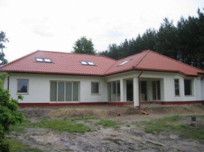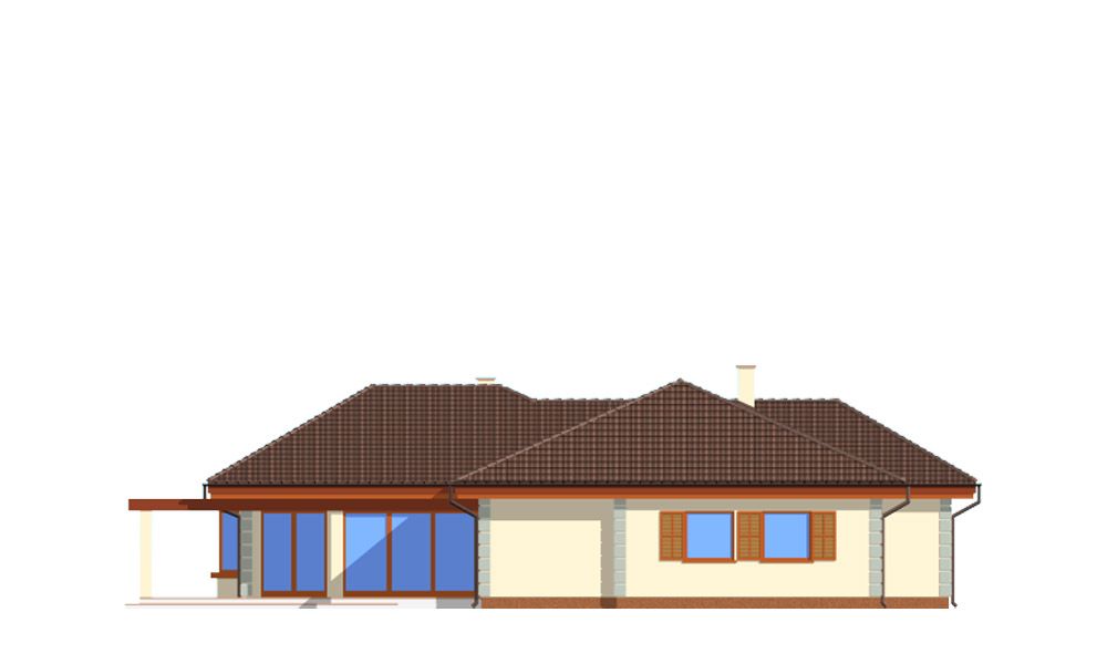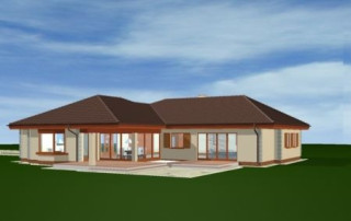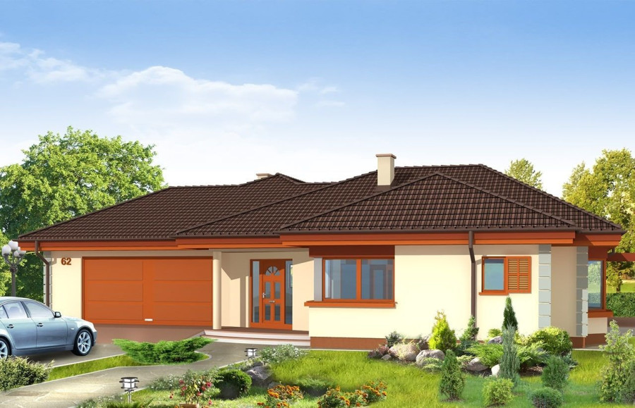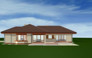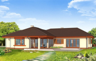 Projekt domu Komfortowy to duży, rozległy dom dla rodziny 4- 6-osobowej. Zaprojektowany został z myślą o osobach uwielbiających kontakt z działką, nieznoszących biegania po schodach. Projekt domu Komfortowy posiada rzut parteru o rozbudowanym programie użytkowym, składającym się z części dziennej, części prywatnej z sypialniami i gospodarczej z garażem dwustanowiskowym. Dom ma atrakcyjny wygląd z każdej strony. Mimo sporej powierzchni dzięki rozczłonkowaniu brył nie stwarza wrażenia bardzo dużego od zewnątrz. Istnieje możliwość częściowego zagospodarowania poddasza, oraz podwyższenia sufitu nad salonem. Pracownia dysponuje także projektem domu Komfortowy w odbiciu lustrzanym. Zapraszamy do zapoznania się z innymi projektami domów: projekt domu Komfortowy, projekt domu Komfortowy 2, projekt domu Komfortowy 3.