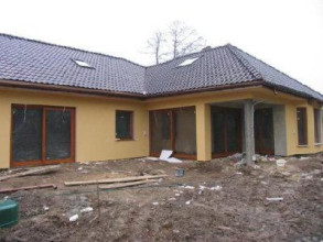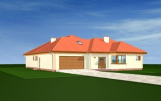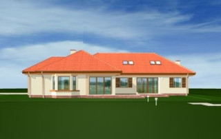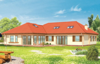 Projekt domu Komfortowy 2 jest powiększoną wersją projektu Komfortowy. Ma bardziej rozbudowany plan parteru oraz duży strych, który można wykorzystać jako poddasze użytkowe. Budynek składa się z dwóch części: dziennej - z holem, salonem, jadalnią i kuchnią - tworzącymi jednoprzestrzenną całość, oraz części nocnej - z sypialnią rodziców, gabinetem, dwiema sypialniami dzieci, pokojem kąpielowym. Każda z sypialni ma własną garderobę, sypialnia rodziców - własną łazienkę. Części domu rozdzielono garażem i pomieszczeniami gospodarczymi. Poddasze można zaadaptować na dodatkowe pokoje. Projekt domu Komfortowy 2 zaprojektowano na planie litery L - tak, aby tarasy, przeszklenia, podcień tworzyły wewnętrzne patio. Komfortowy 2 to duży, przestronny dom, który zapewni idealne miejsce do życia dla rodziny 4-5 osobowej. Zapraszamy do zapoznania się z innymi projektami domów: projekt domu Komfortowy, projekt domu Komfortowy 2, projekt domu Komfortowy 3.