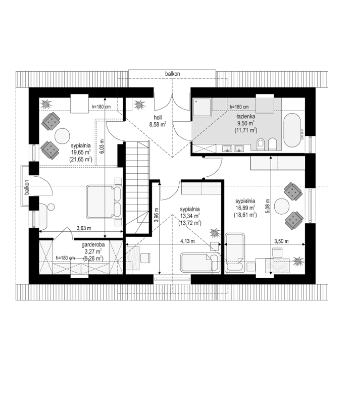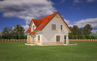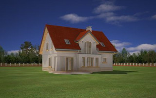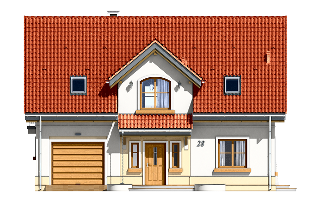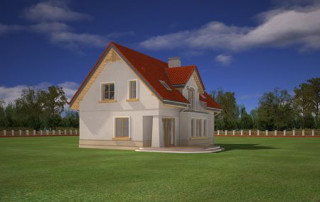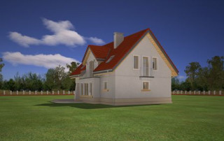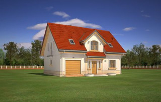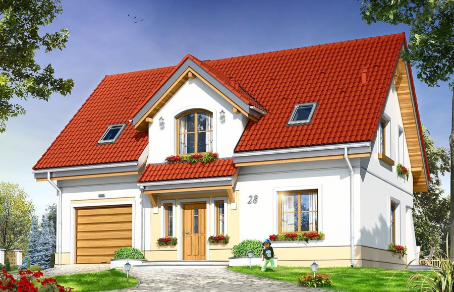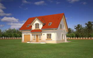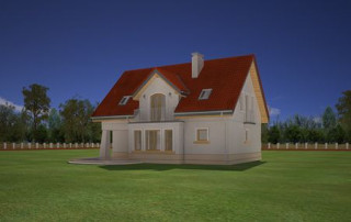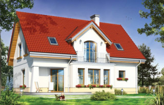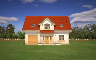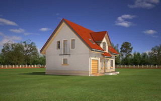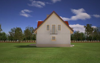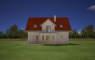 Projekt domu Koniczynka to uroczy domek jednorodzinny dla 4- 5-osobowej rodziny - parterowy z poddaszem użytkowym, z wbudowanym garażem. Jego prosta bryła i nieskomplikowana konstrukcja zapewni łatwą i niedrogą budowę. Jednocześnie niewielka powierzchnia domu, połączona z funkcjonalnością i sensownym układem pomieszczeń, da oszczędności w późniejszym utrzymaniu budynku. Prostokątny rzut domu Koniczynka przekrywa dwuspadowy dach, ozdobiony od przodu i od ogrodu szerokimi lukarnami. Wygląd zewnętrzny Koniczynki łączy w sobie tradycyjną, solidną formę, oraz nowoczesne materiały i detale architektoniczne. Lekka, prosta bryła, o symetrycznych elewacjach ma w sobie jednocześnie dużo wdzięku i elegancji. Wnętrze domu zaprojektowano z podziałem na parter – jako część dzienną i gospodarczą z garażem, oraz poddasze – z sypialniami domowników. Na parterze udało się uzyskać piękny salon z jadalnią, połączony przestrzennie z holem, z wyeksponowanymi eleganckimi schodami na poddasze. Do tego na dolnej kondygnacji mamy jeszcze ładną ustawną kuchnię, duży przedsionek - z połączeniem z garażem i kotłownią, oraz wc. Z salonu zaprojektowano wyjście na taras, częściowo osłonięty narożnym podcieniem. Na poddaszu przewidziano trzy bardzo ładne sypialnię i dużą łazienkę. Sypialnia rodziców posiada własną garderobę i balkonik. Wariantowo przewidziano wydzielenie ścianą działową czwartego pomieszczenia na przykład domowego biura. Pracownia posiada wersję odbicia lustrzanego projektu domu Koniczynka.