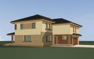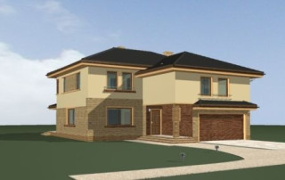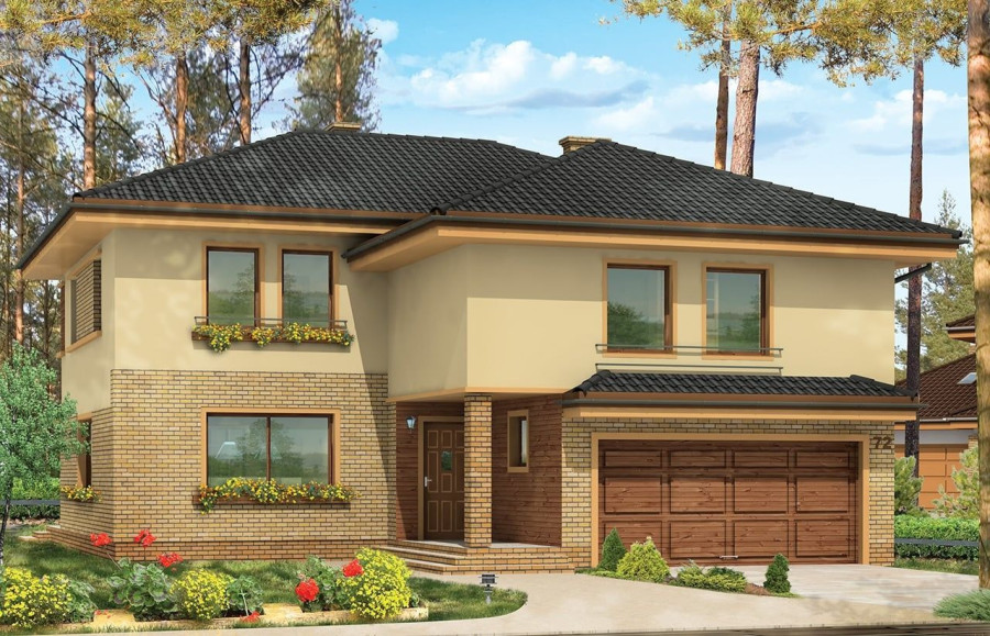 Projekt domu Koral jest piętrowym domem dla 4- 6-osobowej rodziny. Architekturę budynku utrzymano w nowoczesnym stylu, łącząc prostotę z dopracowaniem detalu. Budynek składa się z dwóch brył - mieszkalnej i dobudowanego garażu. Od frontu zaplanowano podcień wejściowy, od strony tarasu- podcień ogrodowy. Narożne okna, gzymsy, wysunięte okapy tworzą wrażenie nowoczesności, poziome podziały elewacji obniżają wizualnie wysoką dwukondygnacyjną ścianę. Wnętrze domu Koral zaprojektowano tak, że salon jest doświetlony z trzech stron, przez co nawet przy niekorzystnym usytuowaniu domu względem stron świata wnętrze będzie dobrze oświetlone. Także kuchnia, znajdująca się w Koralu na parterze jest dobrze doświetlona przez okno, otwierające ją na ogród; jest ona oddzielona od salonu - zostawiono jedynie przejście. Na parterze zaplanowano dodatkowy pokój. Na piętrze natomiast mieszczą się cztery pokoje z dwiema łazienkami, garderobami i pralnią. Projekt domu Koral dostępny jest również w odbiciu lustrzanym.