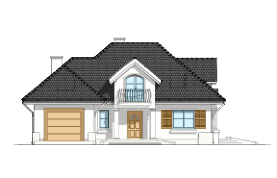 Wariant projektu z pojedynczym garażem i dwoma garderobami na poddaszu. W pracowni MG Projekt dostępna jest także wersja projektu Maja w odbiciu lustrzanym oraz inne jego warianty: projekt domu Maja, projekt domu Maja 2, projekt domu Maja 3, projekt domu Maja 4.