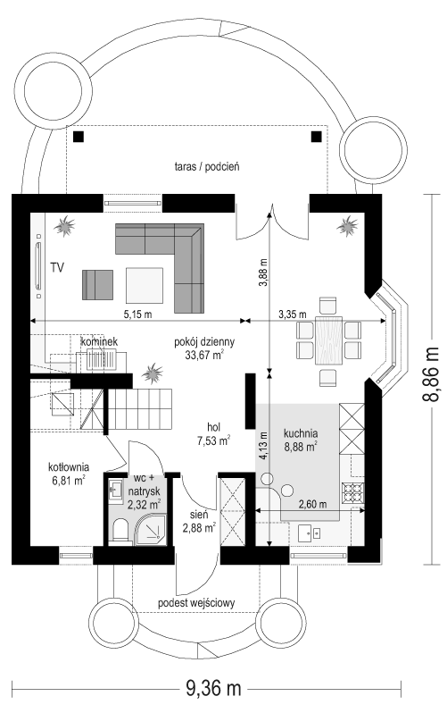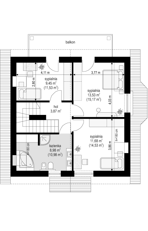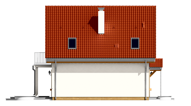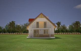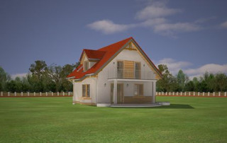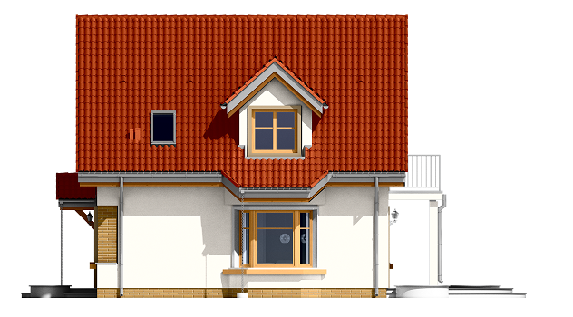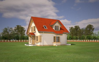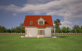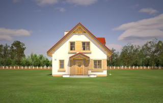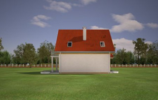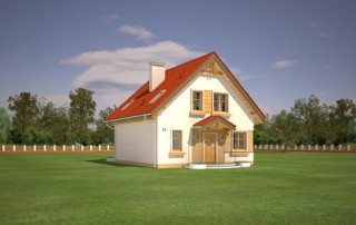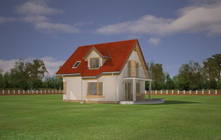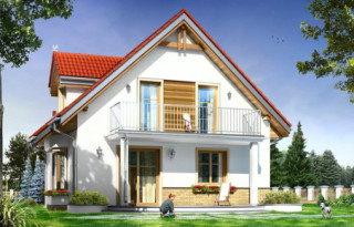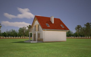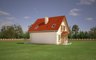 Projekt domu Michalina to uroczy domek jednorodzinny – zrealizowany jako „braciszek” projektu Michałek - oba domy mają podobną wielkość i rozplanowanie wnętrza, różną się kształtem dachu. Dom Michalina został zaprojektowany dla czteroosobowej rodziny - budynek jest parterowy z poddaszem użytkowym. Na parterze przewidziano obszerną część dzienną, z salonem, aneksem jadalnym, ładną – otwartą kuchnią, holem i dużą kotłownią. Na poddaszu mieszczą się trzy sypialnie i wygodna łazienka. Tradycyjna bryła budynku, zbudowana na planie kwadratu, została przekryta dwuspadowym dachem. Dach zaprojektowano tak, aby ściany szczytowe domu były od strony elewacji frontowej i ogrodowej. Front budynku ozdabia zgrabny daszek podkreślający wejście. Od strony ogrodu zaprojektowano z kolei balkon na kolumnach, będący jednocześnie zadaszeniem tarasu. Architektura domu jest spokojna, jednocześnie zachowane zostały właściwe proporcje bryły. Zastosowane nowoczesne materiały i ciekawa kolorystyka dają udany efekt całości. Projekt domu Michalina to doskonała propozycja dla Inwestorów szukających niedużego, wygodnego domu dla swojej rodziny, biorących pod uwagę oszczędność kosztów, prostotę budowy i niewielki koszt utrzymania domu. Pracownia posiada również wersję odbicia lustrzanego projektu domu Michalina.