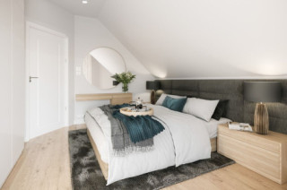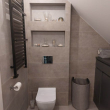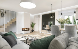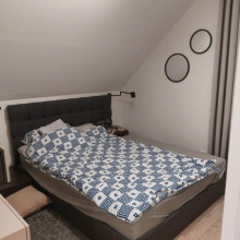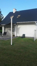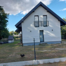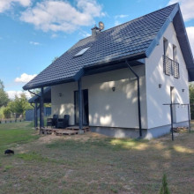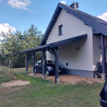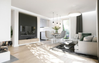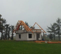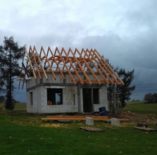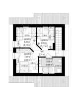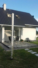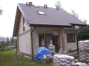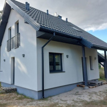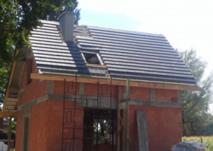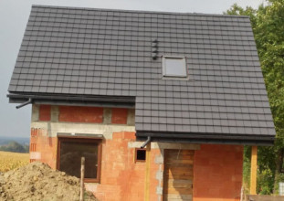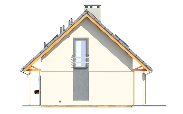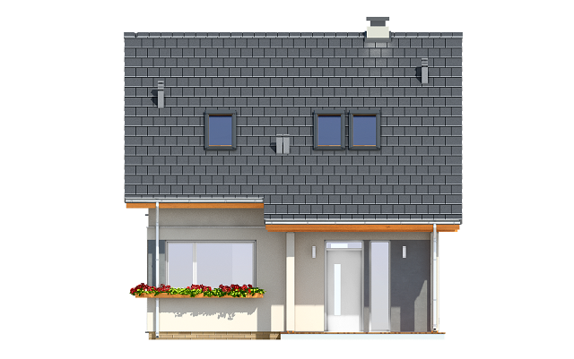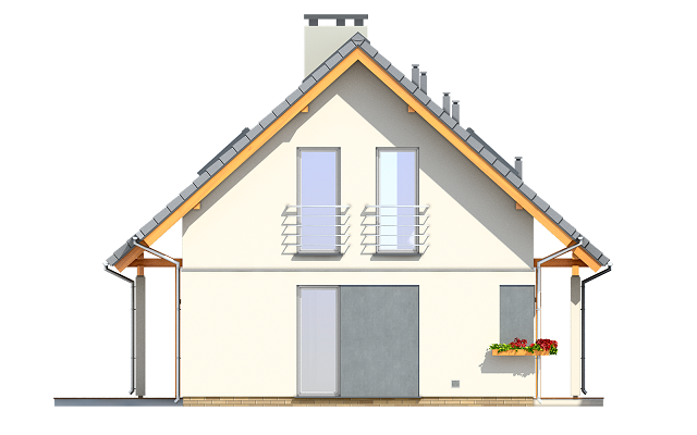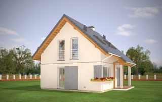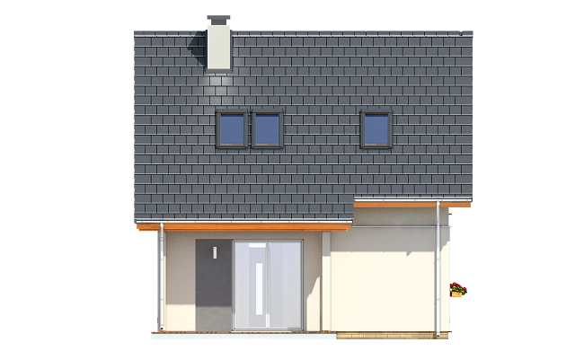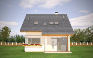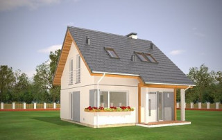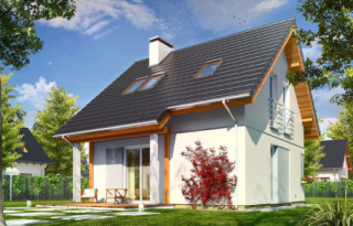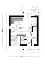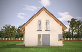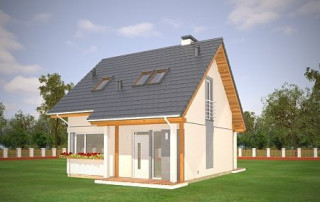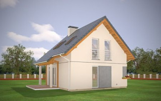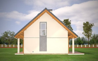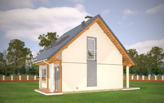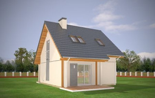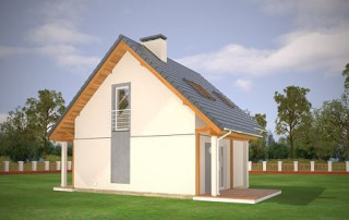 Projekt domu Mikrus to sympatyczny niewielki domek jednorodzinny dla 3-4 osobowej rodzinki. Projekt domu Mikrus jest mały, ale równocześnie pojemny i funkcjonalny. W niewielkiej kubaturze udało się zmieścić pełnoprawne czteropokojowe mieszkanie. Dom jest całoroczny, można go też wykorzystywać jako budynek letniskowy. Projekt domu Mikrus ma bardzo prostą bryłę. Zbudowany jest na planie kwadratu o boku 7,3 m, przekryty jest symetrycznym dwuspadowym dachem. Budynek ma prostą konstrukcję, jest łatwy i niedrogi w budowie, a przy tym – dzięki dobrym ociepleniom - energooszczędny i tani w późniejszym utrzymaniu. Wygląd zewnętrzny domu łączy w sobie tradycyjną formę, z nowoczesnymi detalami. Jest to prosta, oszczędna w wyrazie architektura, która dobrze wkomponuje się praktycznie w każde otoczenie. Wnętrze domu podzielono na część dzienną na parterze i sypialnie na poddaszu. Na parterze ładny pokój dzienny łączy się z kuchnią tworząc jedną otwartą przestrzeń. W salonie jest miejsce na kominek, ścianę TV, oraz kącik ze stołem jadalnym. Przy przedsionku zaprojektowano łazienkę i kotłownię. Kotłownia jest gazowa, ale można tam zastosować też kocioł na paliwo stałe. Sprytnie umieszczone schody nie zajmują dużo miejsca i są ozdobą salonu. Z pokoju dziennego szerokimi drzwiami balkonowymi wychodzimy na częściowo zadaszony taras i do ogrodu. Na poddaszu udało się zmieścić trzy niewielkie sypialnie oraz łazienkę. Poddasze można podzielić też w inny sposób – wedle uznania Inwestora - na przykład na dwie większe sypialnie. Projekt domu Mikrus jest niedrogi, łatwy w budowie i tani w późniejszym utrzymaniu. Ma wszystko, czego można oczekiwać od oszczędnego projektu. Pracownia posiada projekt w odbiciu lustrzanym.