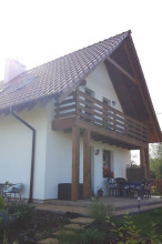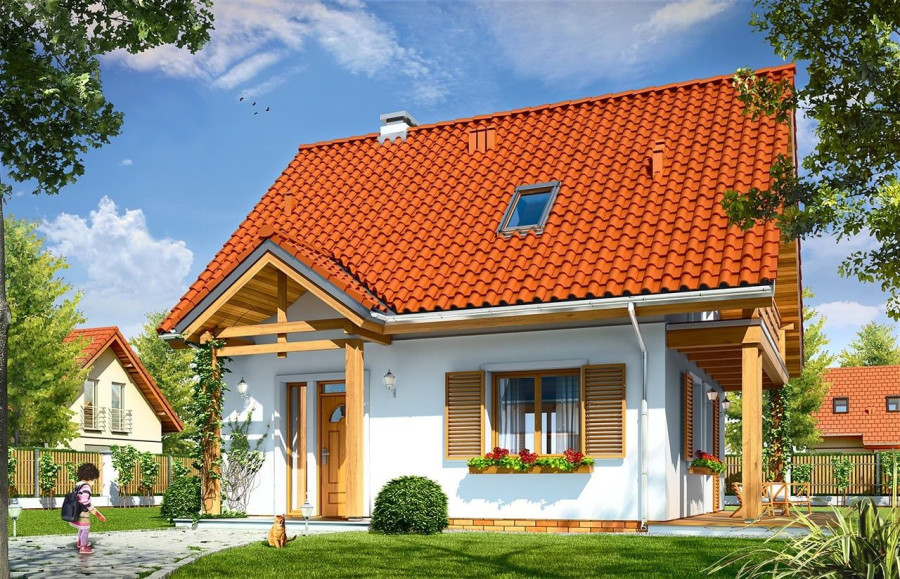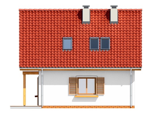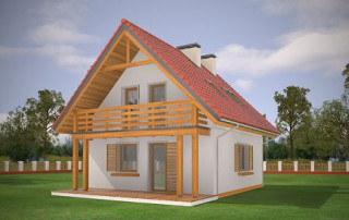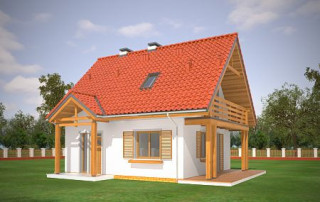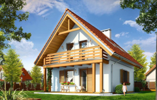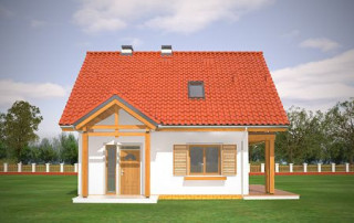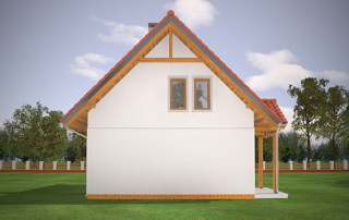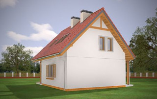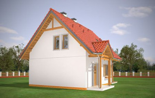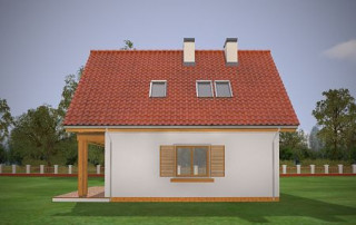 Projekt domu Milutki przeznaczony jest dla 3- 4-osobowej rodziny. Dom został zaprojektowany jako jednorodzinny całoroczny, może też służyć jako budynek letniskowy. Prostokątny rzut parteru został przykryty dwuspadowym dachem, mieszczącym w sobie poddasze użytkowe. Ciekawą bryłę urozmaicono zadaszeniem tarasu i balkonem od strony ogrodu, oraz wspartym na dwóch kolumienkach daszkiem nad wejściem. Architektura domu łączy w sobie tradycyjną formę, z nowoczesnym detalem i materiałami. Projekt dzięki swojej bezpretensjonalności doskonale wpisuje się w każde otoczenie. Milutki dobrze będzie wyglądał i w górach, i na Mazurach :-). Wnętrze domu podzielono na część dzienną na parterze i sypialnie na poddaszu. Połączone pomieszczenia salonu, kuchni i holu tworzą dużą otwartą wspólną przestrzeń. Sprytnie umiejscowione schody na piętro są ozdobą pokoju dziennego. Centralnie umieszczony komin obsługuje zarówno kominek w salonie jak i kocioł w sąsiedniej kotłowni. Kotłownia zaprojektowana jako gazowa, może być łatwo dostosowana dla pieca na paliwo stałe. Na poddaszu znalazło się miejsce dla trzech niewielkich sypialni i łazienki. Ścianki działowe poddasza można łatwo i dowolnie przestawiać, zmieniając konfigurację pomieszczeń. Projekt domu Milutki uwzględnia bardzo dobre ocieplenia przegród. Dom jest energooszczędny - zastosowano w nim nowoczesne instalacje. Dzięki prostej i niedrogiej w realizacji konstrukcji z jednej strony i zastosowanym energooszczędnym technologiom z drugiej strony, dom będzie tani w budowie i późniejszej eksploatacji. Projekt domu Milutki jest idealną propozycją dla liczących pieniądze Inwestorów pragnących mieszkać w oszczędnym i uroczym domku jednorodzinnym. Pracownia posiada odbicie lustrzane projektu.