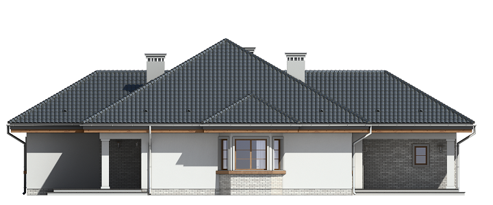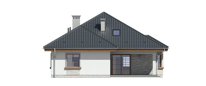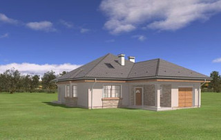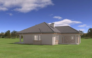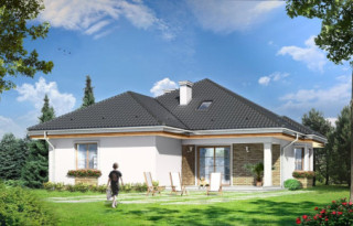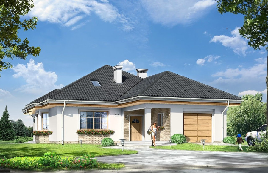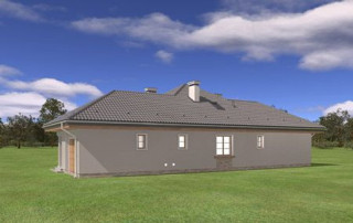 Projekt domu Natalia 4 to wersja wariantowa popularnego projektu Natalia. Tym razem dom jest węższy, przystosowany do wąskiej działki. Budynek jest parterowy, przekryty kopertowym dachem z dwiema dobudowanymi częściami - garażem od frontu i sypialniami od strony ogrodowej. Nad parterem znajduje się strych, który można w drugim etapie zaadaptować jako poddasze użytkowe. Architektura zewnętrzna domku Natalia 4 jest bezpretensjonalna. Łączy w sobie tradycyjną formę polskiego "dachowca" z nowoczesnym detalem i materiałami. Całość jest lekka i zachowuje ludzką skalę. Dom doskonale wtapia się w otoczenie i zachowuje kontakt z ogrodem. Wewnątrz zaprojektowano jednoprzestrzenną część dzienną - z salonem, holem, otwartą dużą kuchnią, część nocną - z trzema sypialniami i łazienką, oraz część gospodarczą - z garażem i kotłownią. Pokój dzienny z aneksem jadalnym z wykuszem, narożnym kominkiem, wyeksponowaną ścianą telewizyjną, czy szerokimi szklanymi drzwiami na częściowo zadaszony taras i ogród, stanowi łącznik wszystkich pomieszczeń i główne miejsce życia domowników. Stąd przechodzimy do sypialni, czy na strych, który można zaadaptować na poddasze użytkowe. W pracowni MG Projekt można zamówić też wersję odbicia lustrzanego projektu domu Natalia 4, lub jedną z trzech pozostałych wersji: podstawowa (projekt domu Natalia), o największej powierzchni 180.49 m2 (projekt domu Natalia 2), komfortową z trzema sypialniami (projekt domu Natalia 3). Zapraszamy!