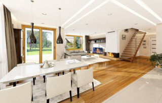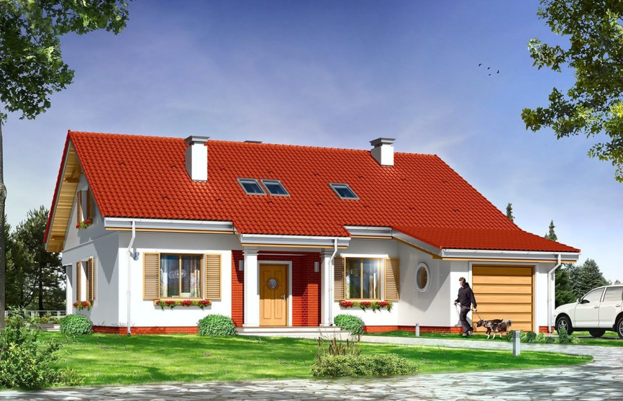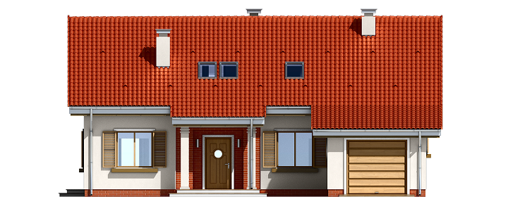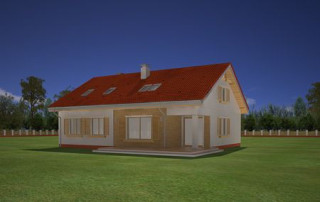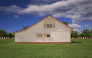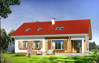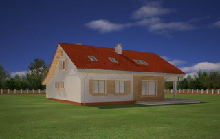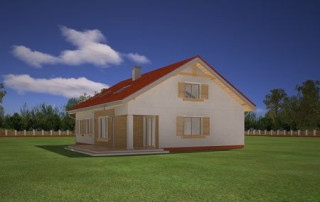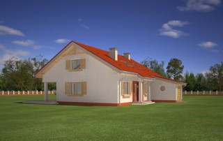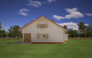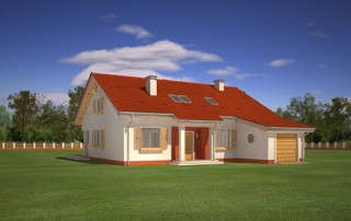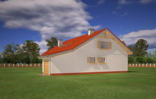 Projekt domu Nektarynka to śliczny domek jednorodzinny, przeznaczony dla 4-osobowej rodziny, która „rośnie” i może potrzebować z biegiem czasu więcej dodatkowej przestrzeni. Projekt domu Nektarynka to dom parterowy, przekryty dwuspadowym dachem, ze strychem do zaadaptowania na poddasze użytkowe – w drugim etapie. Architektura domu Nektarynka jest tradycyjna, nawiązująca do języka detali polskich dworków. Prosta bryła budynku i dobrze dobrane proporcje, dają spokojny i nieprzesadzony efekt. Elewację frontową ozdobiono zadaszeniem nad podcieniem wejściowym, wspartym na dwóch kolumnach. Od strony ogrodu elewację urozmaicają: podcień w narożniku domu, piękne okno z salonu na ogród i fragment elewacji klinkierowej. Wnętrze domu: wszystkie pomieszczenia zaprojektowano na parterze, a strych przewidziano jako dodatkową przestrzeń do późniejszego dowolnego zagospodarowania. Parter wyraźnie rozdzielono na część dzienną – z salonem, anaksem jadalnym, holem i kuchnią, oraz część nocną – z trzema sypialniami i łazienką. Dodatkowo jest też część gospodarcza z garażem i kotłownią. Dzięki włączeniu garażu w szerokość części dziennej budynku Nektarynkę można zmieścić na węższej działce niż wiele tego typu domów z garażem dobudowanym z boku. Pracownia posiada również wersję odbicia lustrzanego projektu domu Nektarynka.