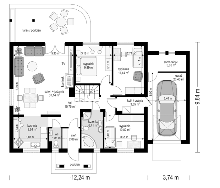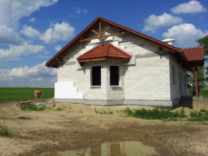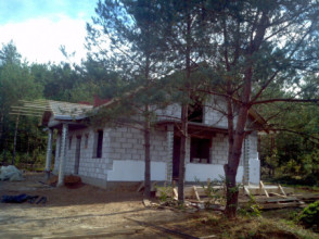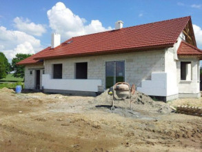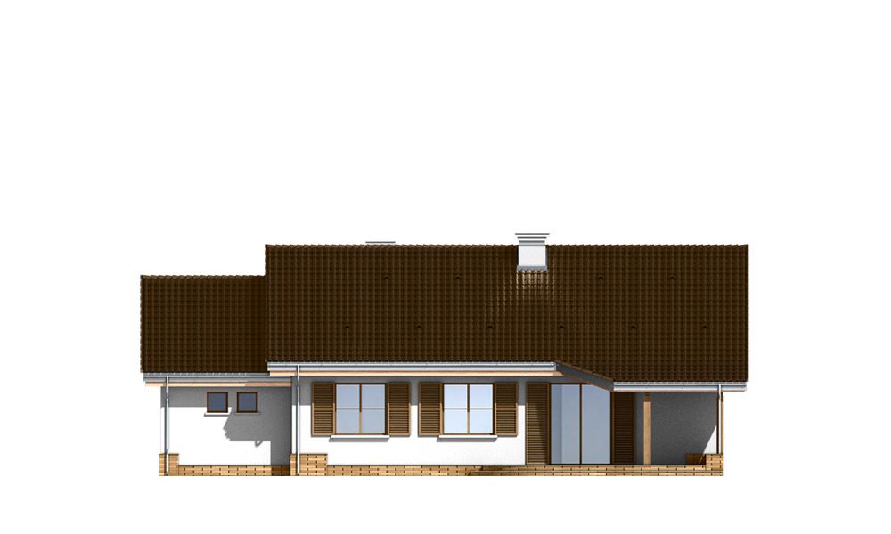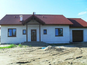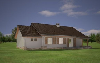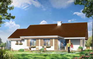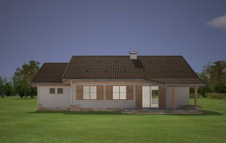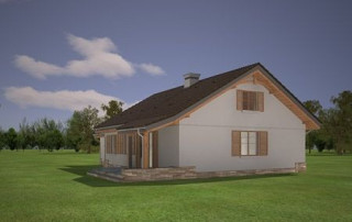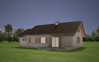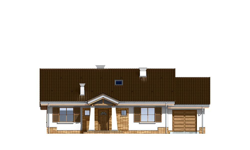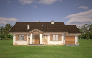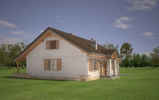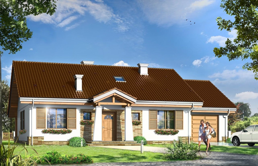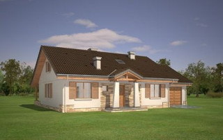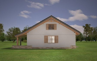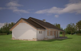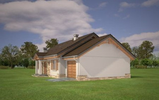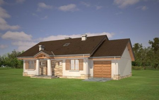 Projekt domu Niezapominajka z garażem jest wariantową wersją projektu domu Niezapominajka. Dom jednorodzinny, parterowy, zaprojektowany został z myślą o czteroosobowej rodzinie. Prostokątna bryła budynku z dobudowanym garażem została przekryta dwuspadowymi dachami. Nieużytkowy strych nad parterem można zaadaptować na poddasze. Architektonicznie dom Niezapominajka z Garażem nawiązuje do typowej tradycyjnej stylistyki. Front domu z zaakcentowanym gankiem wejściowym wspartym na dwóch kolumnach z oknami po bokach, przypomina klasyczny polski dworek. Wnętrze domu podzielono na część dzienną, z salonem, holem i częściowo otwartą kuchnią, oraz część nocną z trzema sypialniami i łazienką. W niewielkiej kotłowni można zainstalować kocioł gazowy, lub można przenieść kotłownię do pomieszczenia za garażem i umieścić tam kocioł na paliwo stałe. Projekt domu Niezapominajka z garażem stanowi świetną propozycję dla Inwestorów chcących niedrogo wybudować dom, którzy chcą zostawić sobie możliwość wykończenia w drugim etapie dodatkowej przestrzeni na strychu - lub po prostu mieć duży przydatny przecież strych. Projekt domu Niezapominajka z garażem dostępny jest także w odbiciu lustrzanym oraz innych jego wariantów: projekt domu Niezapominajka, projekt domu Niezapominajka z garażem 2.