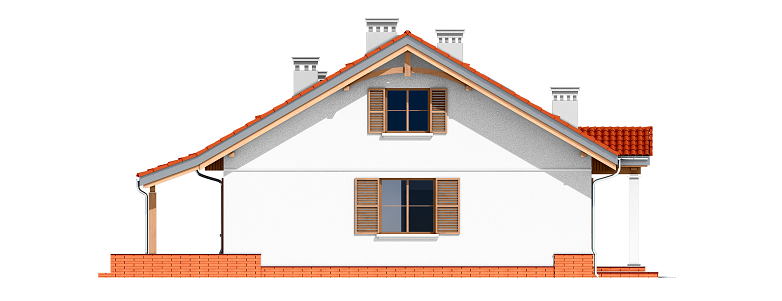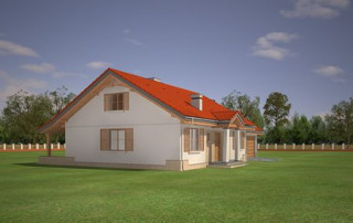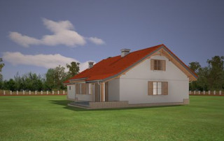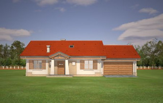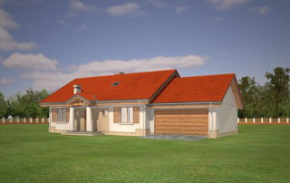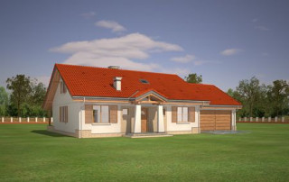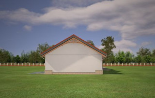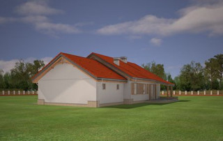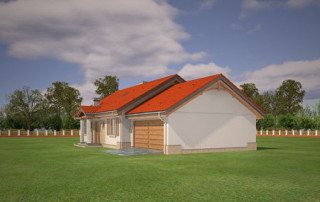 Projekt domu Niezapominajka z garażem 2 to wariant popularnego projektu Niezapominajka – tym razem z podwójnym garażem i obszerną częścią gospodarczą. Projekt domu Niezapominajka z garażem 2 to dom jednorodzinny, parterowy, przeznaczony dla 4- 5-osobowej rodziny. Prostokątna bryła budynku z dobudowanym garażem została przekryta dwuspadowymi dachami. Nieużytkowy strych nad parterem można zaadaptować na poddasze. Architektonicznie dom nawiązuje do typowej tradycyjnej stylistyki. Front domu z zaakcentowanym gankiem wejściowym wspartym na dwóch kolumnach z oknami po bokach, przypomina polski dworek. Wnętrze domu podzielono na część dzienną, z salonem, holem i częściowo otwartą kuchnią, oraz część nocną z trzema sypialniami i łazienką. Zaletą tej wersji projektu jest kotłownia przeniesiona do pomieszczenia za garażem, dzięki czemu dom można ogrzewać gazem, ale też zamiennie paliwem stałym. Projekt domu Niezapominajka z garażem 2 stanowi świetną propozycję dla inwestorów chcących niedrogo wybudować dom, którzy planują zostawić sobie możliwość wykończenia w drugim etapie dodatkowej przestrzeni na strychu – lub po prostu mieć duży przydatny przecież strych. Pracownia posiada wersję odbicia lustrzanego projektu oraz innych jego wariantów: projekt domu Niezapominajka, projekt domu Niezapominajka z garażem.