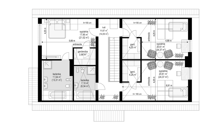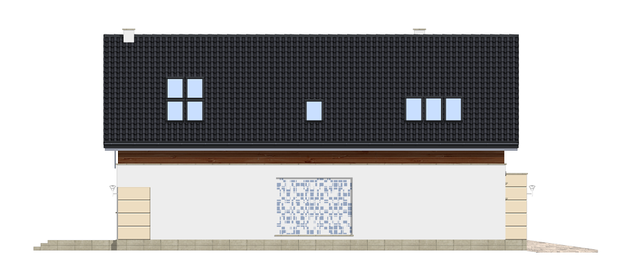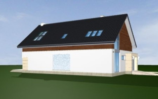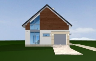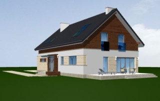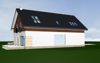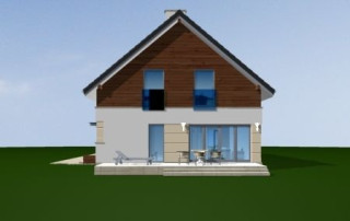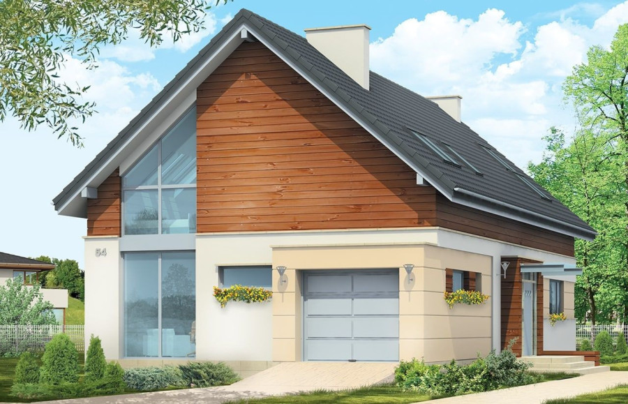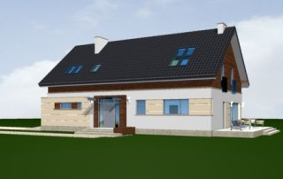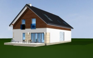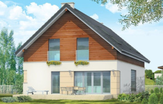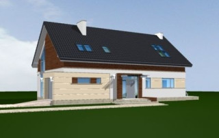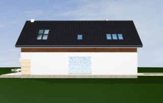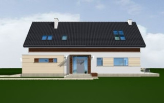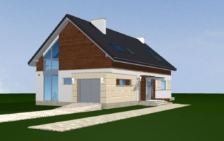 Projekt domu Nowoczesny stworzony został z myślą o Inwestorach ceniących współczesną architekturę i rozwiązania projektowe. Projekt domu Nowoczesny powstał z myślą o Klientach ceniących proste, eleganckie rozwiązania. Prostokątny rzut parteru domu został przekryty symetrycznym dwuspadowym dachem nad poddaszem. Umiejscowienie okien, elementów okładzin elewacji - wszystkie te elementy skomponowano tak, aby dodać bryle dynamiki. W efekcie prostymi środkami, uzyskano bardzo atrakcyjny wygląd. Wnętrze domu również nawiązuje do tego stylu: jasne, klarowne podziały środka tworzą jednocześnie bardzo ciekawe wnętrze. Jednoprzestrzenny salon z jadalnią połączony z kuchnią, łączy się z holem oddzielonym jednobiegowymi schodami na poddasze. Przejścia, przeszklone powierzchnie otwierające wnętrze na ogród, usytuowanie kominka - wszystko składa się na oryginalność wnętrza. Na parterze zaplanowano jeszcze gabinet i garaż z kotłownią. Na poddaszu natomiast miejsce znalazły: sypialnia rodziców z garderobą i łazienką, oraz sypialnie dzieci z łazienką. Dom Nowoczesny, pomimo oryginalnych detali architektonicznych ma tradycyjną formę budynku z dwuspadowym dachem - to zaowocuje łatwą i niedrogą budową, oraz brakiem problemów z zaakceptowaniem przez urząd wydający pozwolenie na budowę. Pracownia posiada również projekt domu Nowoczesny w odbiciu lustrzanym. Zapraszamy!