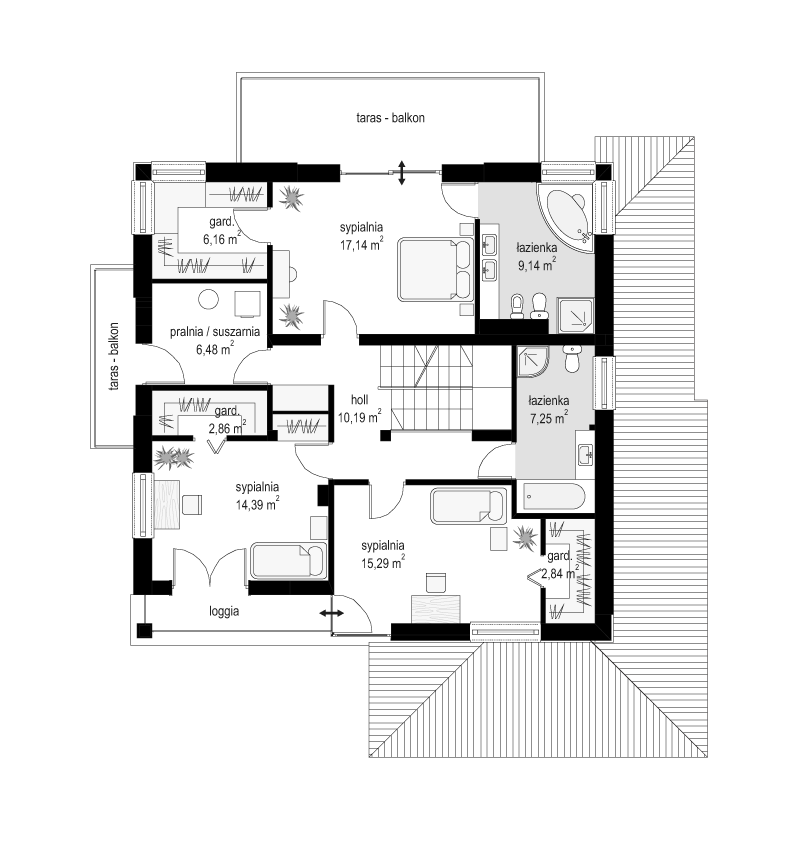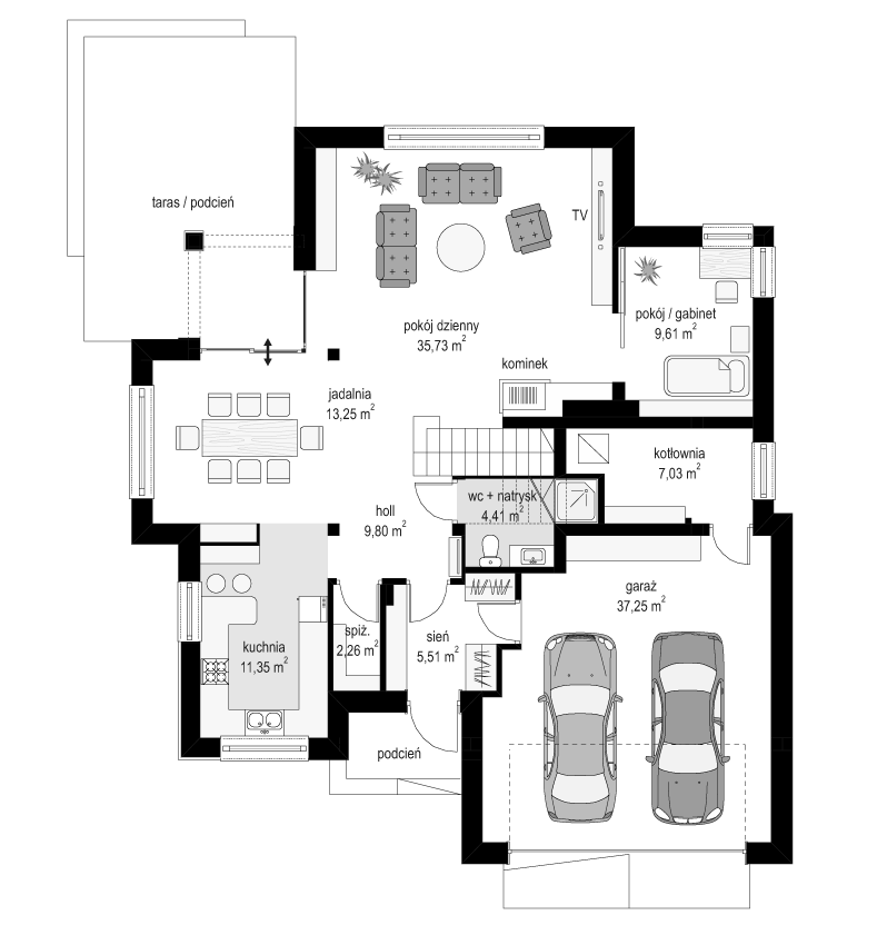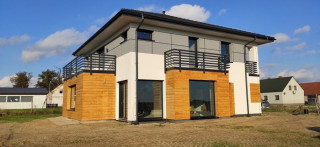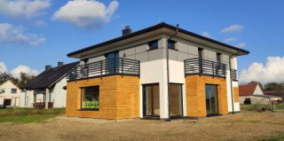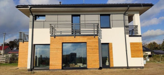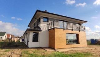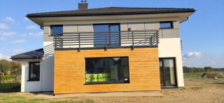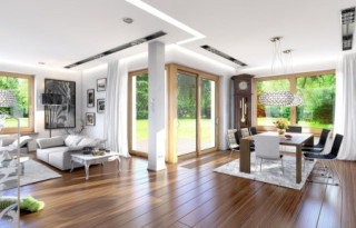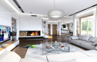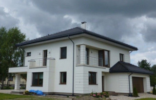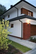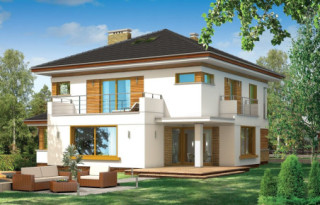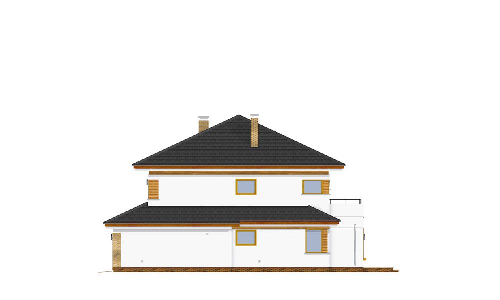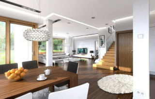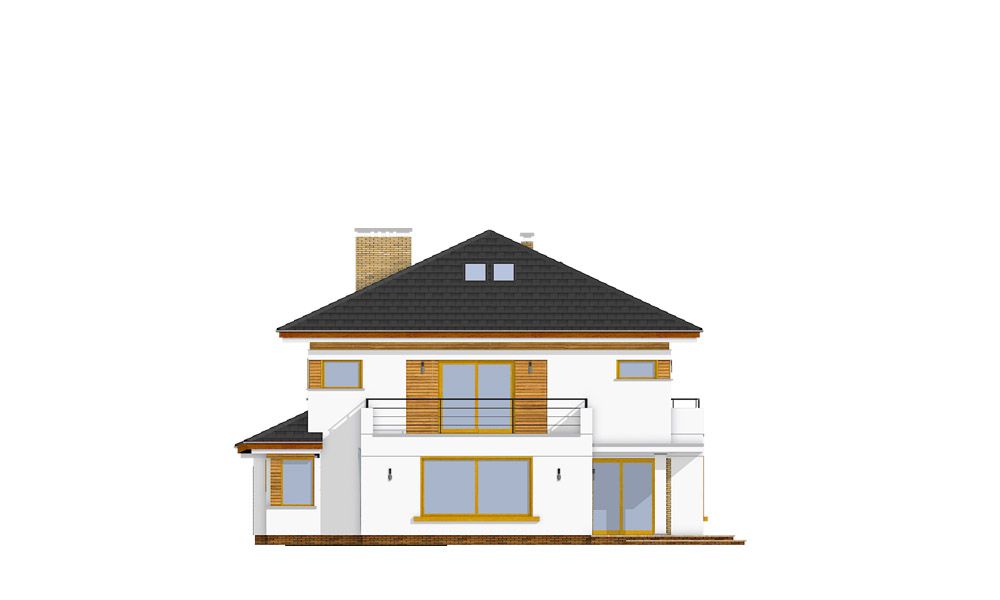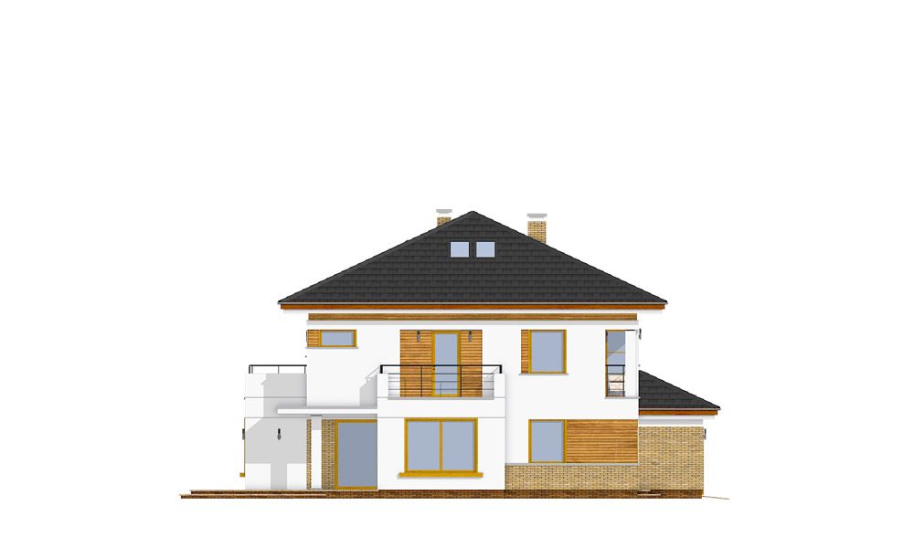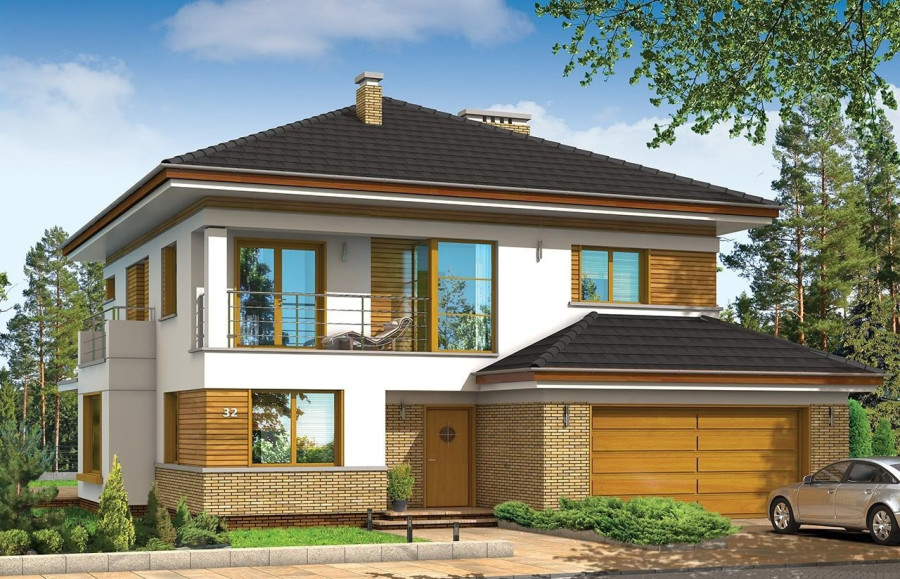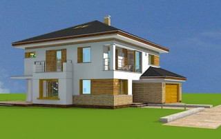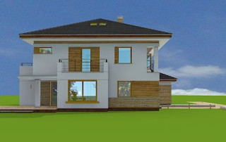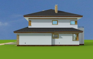 Projekt domu Opal stworzony został z myślą o rodzinie 4- 5-osobowej. Dom jest piętrową miejską willą o nowoczesnej architekturze, przekrytą czterospadowym dachem. Zwarta bryła budynku z dobudowanym garażem i podcieniem od strony ogrodu, została ciekawie ozdobiona klinkierowymi i drewnianymi okładzinami elewacji, oraz loggiami, podcieniem wejściowym i dużym balkonem z tyłu domu. Wszystkie elementy tworzą spójną, spokojną kompozycyjnie całość. Wnętrze projektu Opal to zaprojektowany na parterze duży, kształtem zbliżony do kwadratu salon, z jadalnią i holem, z częściowo otwartą kuchnią, oraz dodatkowy pokój - gabinet lub sypialnię gościnną. Usytuowanie schodów w centralnym miejscu stanowić będzie dodatkową ozdobę otwartego wnętrza parteru. Na piętrze umieszczono sypialnie, z odrębnym apartamentem rodziców, z własną łazienką, garderobą i dużym balkonem-tarasem z widokiem na ogród. Na piętrze, jeśli jest taka potrzeba, można wygospodarować dodatkową czwartą sypialnię - zamiast pralni i garderoby. Pracownia posiada też wersję odbicia lustrzanego projektu Opal oraz wersję powiększoną projekt domu Opal 2.
