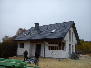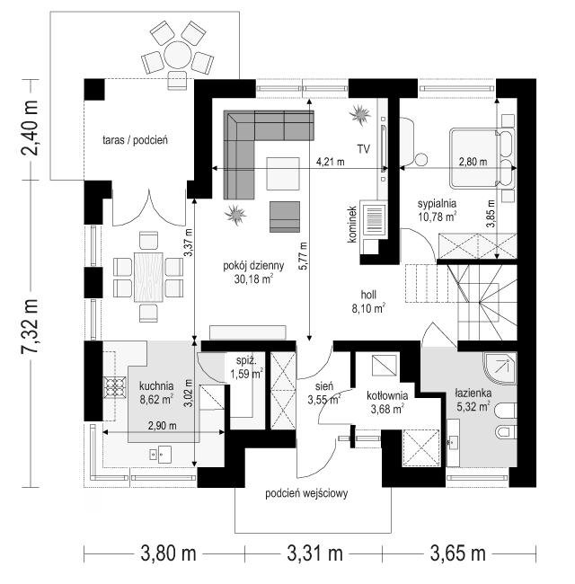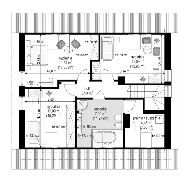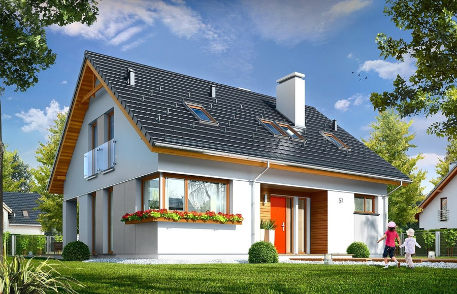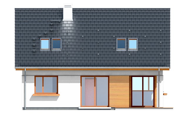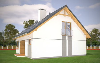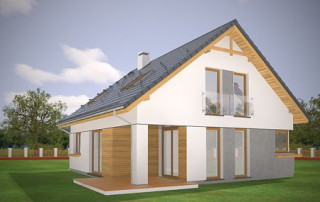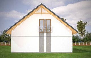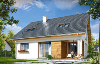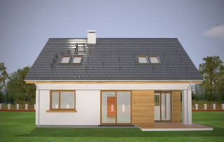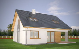 Projekt domu Optymalny jest to dom jednorodzinny, parterowy z poddaszem użytkowym, przeznaczony dla 4- 5-osobowej rodziny. Projekt domu Optymalny architektura Optymalny jest domem o prostej konstrukcji, klarownej, czytelnej bryle. Prostokątny rzut parteru w domu Optymalny przekryty jest symetrycznym dwuspadowym dachem. Brak rozczłonkowania zwiększa energooszczędność, poza tym dzięki zwartemu planowi budynek Optymalny zmieści się nawet na niewielkiej działce o ograniczonej powierzchni zabudowy. Wygląd zewnętrzny domu Optymalny łączy w sobie nowoczesne detale z tradycyjną bryłą. Ciekawie rozmieszczone okna, nowoczesne okładziny ścian – wszystkie te elementy zwiększają atrakcyjność budynku. Wnętrze domu Optymalny Wnętrze domu Optymalny podzielono na część dzienną na parterze, oraz sypialnie na poddaszu. Połączone pomieszczenia salonu, aneksu jadalnego, kuchni i holu projektu optymalny tworzą na parterze dużą otwartą przestrzeń dzienną. Z salonu projektu optymalny szerokimi przeszkleniami przechodzimy na częściowo zadaszony taras i do ogrodu. Ustawione nieco z boku schody ozdabiają wnętrze Optymalnego, a jednocześnie pozwalają zachować prywatność i swobodę osobom w salonie czy jadalni. W projekcie domku Optymalny na parterze przewidziano dodatkowy pokój (gabinet / sypialnię gościnną) z łazienką, oraz kotłownię dostępną z przedsionka. Na poddaszu projektu optymalny umieszczono trzy wygodne sypialnie, łazienkę i pomieszczenie gospodarcze (pralnię /suszarnię). Ścianki działowe na poddaszu można dowolnie modelować, zmieniać układ pomieszczeń. Projekt domu Optymalny ma prostą konstrukcję, jest łatwy w budowie, a dzięki bardzo dobrym ociepleniom i nowoczesnym energooszczędnym instalacjom będzie tani w utrzymaniu. Pracownia posiada projekt domu Optymalny w odbiciu lustrzanym, oraz wersję wariantową Optymalny B, czyli domek z parterem o wysokości 2.7 m oraz podniesioną ścianką kolankową do 1,2 m, ze zlikwidowanymi oknami połaciowymi oraz ze zlikwidowanym oknem i naświetlem bocznym drzwi wejściowych. Dostępna jest również wersja projektu domku z garażem Optymalny 2.