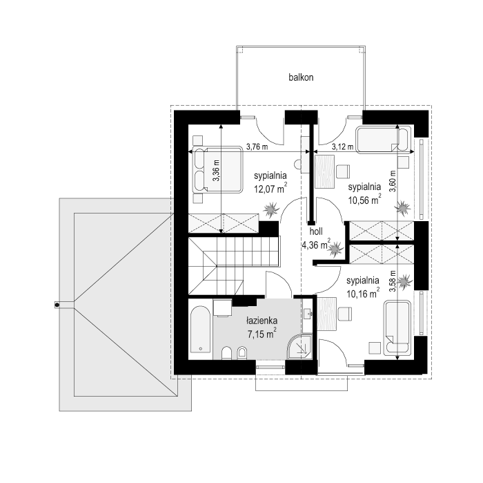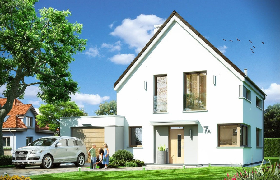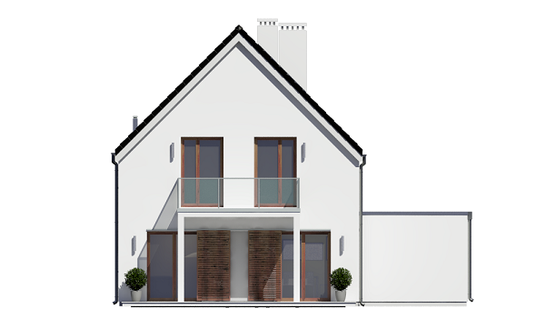 Projekt domu Oszczędny 2 to projekt niedużego domu jednorodzinnego, dla osób, które lubią nowoczesne rozwiązania, nie przepadają na dachami z okapami, ale muszą budować dom z poddaszem użytkowym. Poddasze w projekcie ma na tyle wysoką ścianę kolankową, że prawie nie ma żadnych skosów. Dzięki temu można je w pełni wykorzystać. Powierzchnia użytkowa domu 87,18 m2 pozwala na wygodne zaaranżowanie wnętrza. Projekt domu Oszczędny 2 architektura i wnętrze Projektu dom Oszczędny 2 zaprojektowano na planie zbliżonym do kwadratu. Poddasze projektu Oszczędny 2 przykrywa dwuspadowy symetryczny dach. Do głównej bryły budynku dobudowany jest garaż. Projekt domu Oszczędny 2 to wariantowa wersja projektu – z garażem dobudowanym wdłuż bryły domu. Prosta, nowoczesna bryła domu, symetrycznie i proporcjonalnie rozłożone okna - wszystko to sprawia, że projekt Oszczędny 2 dobrze wkomponuje się w każde sąsiedztwo. Zastosowane nowoczesne materiały, ciekawa kolorystyka budynku, idą w parze z energooszczędnością i prostą konstrukcją domu, która ułatwi i zminimalizuje koszty budowy domu. Wnętrze projektu domu Oszczędny 2 to przestrzeń dzienna na parterze, z pokojem dziennym, holem i kuchnią, z ładnie wyeksponowanymi schodami i kominkiem. Na poddaszu znajdują się trzy sypialnie z łazienką. Na parterze miejsce znalazła spora kotłownia i dobudowany garaż. Można oczywiście wybudować dom Oszczędny 2 także bez garażu. Projekt domu Oszczędny 2 ma zwartą bryłę i bardzo dobre ocieplenia, co czyni go projektem energooszczędnym. W łatwy sposób można go dostosować do standardu NF40. Konstrukcja domu jest bardzo prosta, co ułatwi budowę i obniży koszty realizacji. Koszt budowy domu Oszczędny 2 to 125035 zł za stan surowy zamknięty. Projekty domów z serii projekt domu Oszczędny można zamówić także w wersji odbicia lustrzanego.