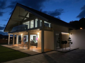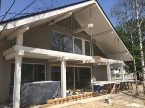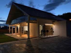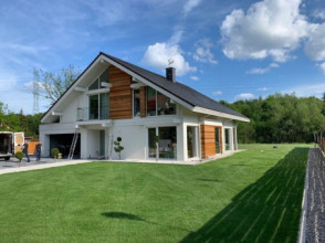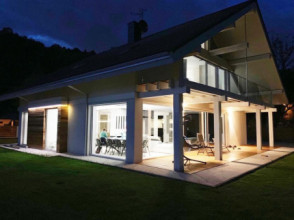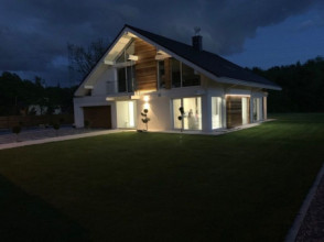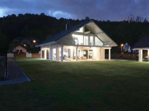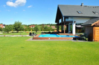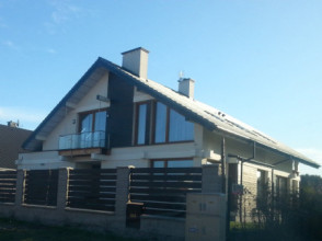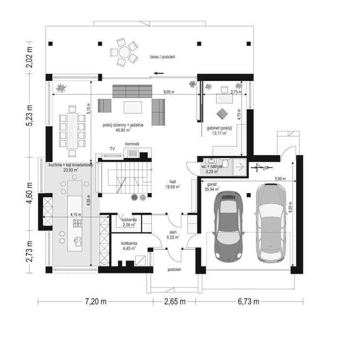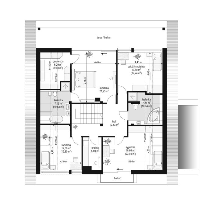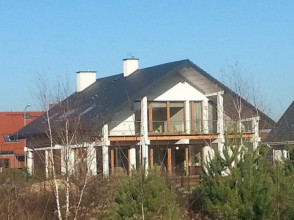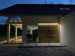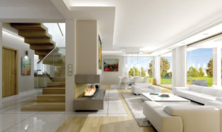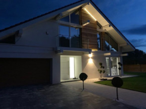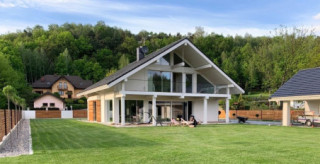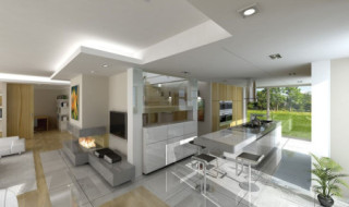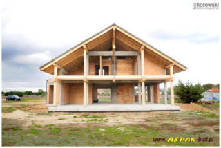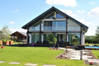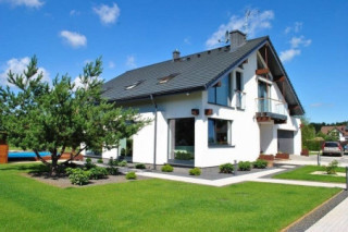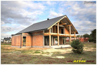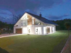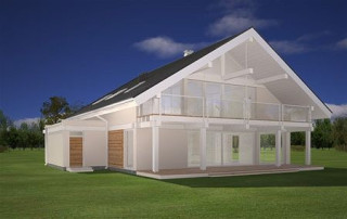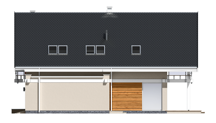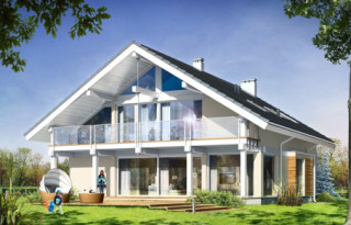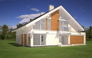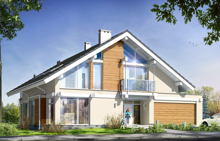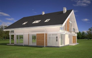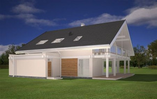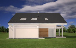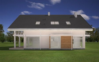 Projekt domu Otwarty to piękny, oryginalny dom jednorodzinny, przeznaczony dla 4- 6-osobowej rodziny. Charakteryzuje się nowoczesną architekturą z dużą ilością przeszkleń i otwarć - dedykowany jest Klientom, którzy chcą wyróżnić się ciekawym, dobrze przemyślanym i funkcjonalnym budynkiem. Dom Otwarty został zaprojektowany jako budynek parterowy z użytkowym poddaszem, o bardzo jasnym układzie konstrukcji, opartym na siatce słupów i podciągów. Dom przekryto dość łagodnym dwuspadowym dachem. W ciekawy i konsekwentny sposób wprowadzono tutaj naprzemienny układ pełnych ścian zewnętrznych i fragmentów całkowicie przeszklonych, co daje elewacjom lekki a wnętrzu niepowtarzalny charakter. Brak tu typowych okiennych parapetów i grzejników wiszących pod oknami. W tradycyjnej formie domu z dwuspadowym dachem, skryto nowoczesną architekturę z charakterem. Budynek jednocześnie, dzięki zastosowaniu odpowiednich materiałów, jest energooszczędny - zatem niedrogi w utrzymaniu. Wnętrze w projekcie domu Otwarty podzielono klasycznie na dzienny parter i poddasze z sypialniami. Na parterze dużym przeszklonym przedsionkiem dostajemy się do centralnego holu, z reprezentacyjnymi schodami, połączonego z salonem i kuchnią. Bardzo ładna kuchnia z wyspą i kącikiem do szybkich posiłków, łączy się z jadalnią i salonem. W pokoju dziennym uwagę zwraca przede wszystkim przeszklona ściana otwierająca dom na zadaszony taras i ogród, oraz - po drugiej stronie - centralny kominek i ściana TV. Na parterze dodatkowo przewidziano pokój - np. gabinet, garaż i kotłownię. Na poddaszu mieszczą się: apartament rodziców - z łazienką i garderobą, trzy dodatkowe sypialnie z łazienką, oraz pralnia. Nad całością znajduje się jeszcze niewielki strych - studio. Projekt domu Otwarty jest propozycją dla odważnych Inwestorów, którzy lubią duże przeszklenia, ładne kontrasty w sylwetce domu i jego wnętrzu. Pracownia posiada odbicie lustrzane projektu oraz kilka wersji: pomniejszonej z garażem dwustanowiskowym (projekt domu Otwarty 2), pomniejszonej z garażem jednostanowiskowym (projekt domu Otwarty 3), ze zmienionym układem pomieszczeń (projekt domu Otwarty 4) oraz na węższą działkę (projekt domu Otwarty 5). Zapraszamy!