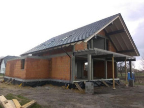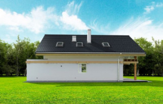 Projekt domu Otwarty 3 to mniejsza wariantowa wersja popularnego projektu Otwarty z naszej pracowni. Dom jest wygodną miejską willą dla 4- 6-osobowej rodziny. Zwarta bryła budynku, o prostokątnym rzucie, przekryta jest dwuspadowym symetrycznym dachem. Prostota konstrukcji i architektoniczna oszczędność form łączy się tutaj z ciekawym i dopracowanym detalem, oraz solidnymi nowoczesnymi materiałami. Architektonicznie Projekt domu Otwarty 3 jest propozycją dla osób pragnących domu nowoczesnego, ale jednocześnie w tradycyjnej „skórze” budynku z dwuspadowym dachem. Oglądając projekt od razu rzucają się w oczy piękne przeszklenia konstatujące z fragmentami pełnych ścian. Okien wydaje się być wiele, ale – wbrew pozorom – nie jest ich więcej niż w każdym innym domu - są po prostu inaczej rozmieszczone. Wnętrze domu podzielono na część dzienną i zaplecze techniczne na parterze, oraz sypialnie na poddaszu. Piękny, otwarty na ogród, dzięki oknom balkonowym, salon, łączy się z holem z wyeksponowanymi schodami, oraz częściowo otwartą kuchnią. Przestrzeń dzienna jest fenomenalna jak na tej skali budynek. Wejście do domu – dzięki drzwiom z bocznymi naświetlami – jest reprezentacyjne i bardzo efektowne. Na parterze znajdują się ponadto: dodatkowy pokój - gabinet lub sypialnia, garaż i kotłownia. Na poddaszu zaproponowaliśmy cztery pokoje i duża rodzinną łazienkę. Z powodzeniem można zamienić dwie sypialnie na apartament rodziców z ich własną łazienką i garderobą. Projekt domu Otwarty 3 ma bardzo logiczny układ konstrukcyjny, jest prosty w budowie. Jedyną ekstrawagancją projektu są piękne przeszklenia ogrodowe. Pracownia oferuje też wersję domu w odbiciu lustrzanym, wersję podstawową (projekt domu Otwarty), większą wersję z garażem dwustanowiskowym (projekt domu Otwarty 2) wersję z garażem po lewej stronie i innym układem pomieszczeń (projekt domu Otwarty 4), ze zmienionym układem pomieszczeń (projekt domu Otwarty 4) oraz na węższą działkę (projekt domu Otwarty 5). Zapraszamy!