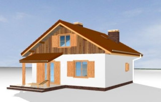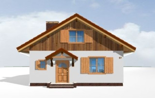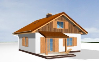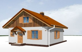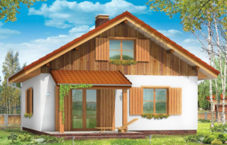 Projekt domu Pchełka to jedna z nowszych propozycji pracowni. Jest to dom przeznaczony dla 4- 5-osób. Może być wykorzystany jako jednorodzinny dom całoroczny, lub jako domek letniskowy. Prosta bryła budynku zaprojektowana została na planie kwadratu i przekryta dwuspadowym dachem. Elewacje ozdobione została ładnymi okapami, daszkami wejściowymi i ogrodowymi. Projekt domu Pchełka posiada zróżnicowaną elewację - parter zaprojektowano jako tynkowany, poddasze - obłożone okładziną drewnianą. Domek jest bardzo zgrabny, ma dobrze dobrane proporcje i skalę. Ze względu na klarowny układ konstrukcji budowa domu powinna być łatwa i niedroga. We wnętrzu domu, na parterze zaplanowano salon z częścią jadalną połączony z kuchnią, pomieszczenie gospodarcze, łazienka i pokój - sypialnia rodziców. Na poddaszu z kolei zaplanowano dwie sypialnie dzieci i łazienkę. Dom Pchełka został zaprojektowany tak, aby możliwe było wykończenie poddasza w drugim etapie. Dostępne jest odbicie lustrzane projektu oraz wersja z garażem (Projekt domu Pchełka z garażem). Zapraszamy!
