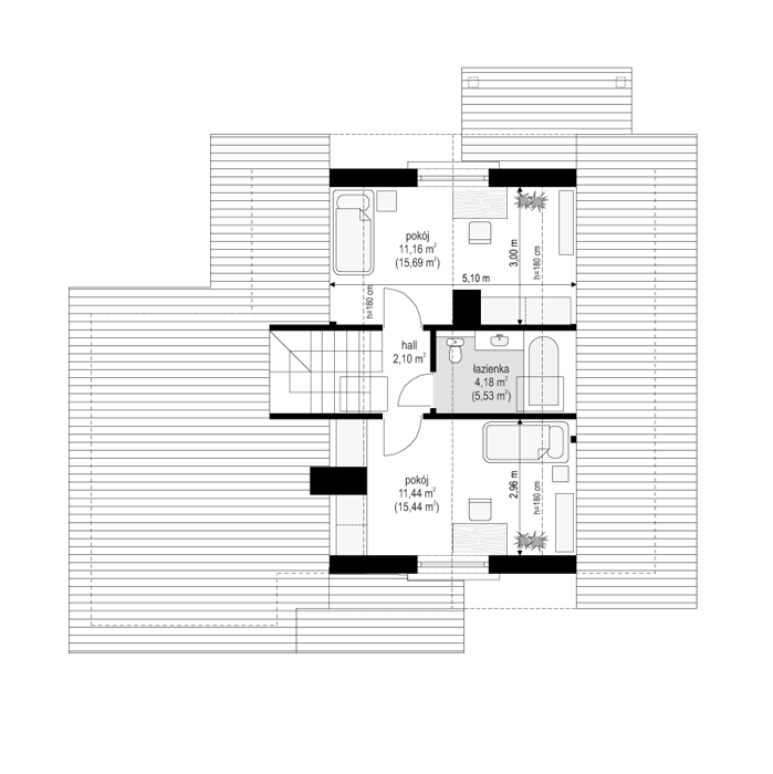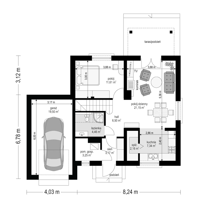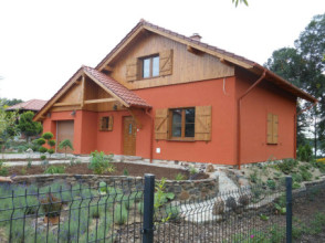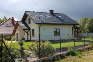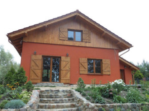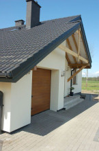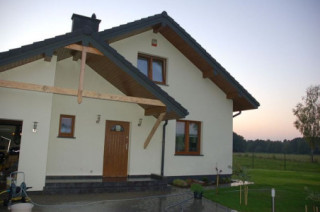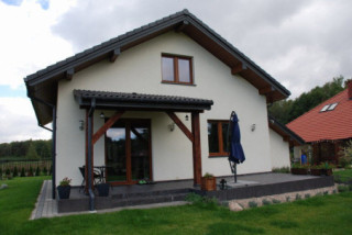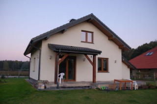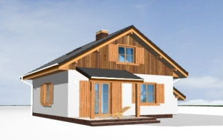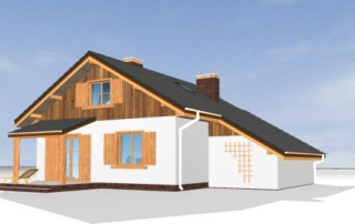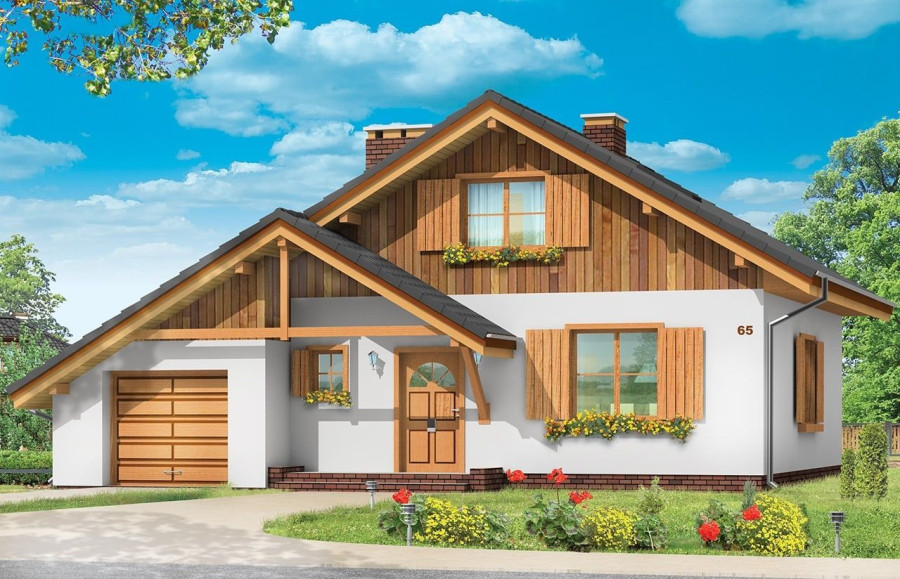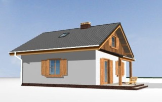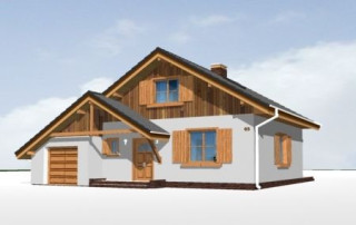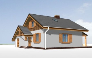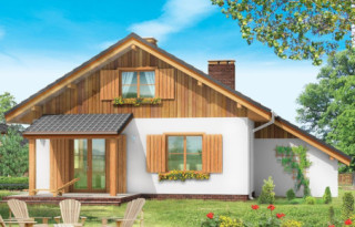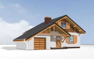 Projekt domu Pchełka z Garażem jest wariantową wersją projekt domu Pchełka, tym razem z dobudowanym garażem. Dom przeznaczony jest dla 4- 5-osób, może być wykorzystany jako jednorodzinny całoroczny, lub jako letniskowy. Prosta bryła budynku, przekryta dwuspadowym dachem urozmaicona została daszkami z dużymi okapami - szczególnie fikuśnym dachem nad wejściem do domu. Wygodny garaż został dobudowany do jednego z boków i przekryty przedłużonym dachem domu. Domek jest bardzo zgrabny, ma dobrze dobrane proporcje i skalę. Ze względu na prosty układ konstrukcji budowa domu powinna być łatwa i niedroga. Wnętrze domu to, na parterze: salon z częścią jadalną połączony z kuchnią, pomieszczenie gospodarcze i garaż, łazienka i pokój - sypialnia rodziców. Na poddaszu zaplanowano dwie sypialnie dzieci i łazienkę. Dom Pchełka z garażem został zaprojektowany tak, aby możliwe było wykończenie poddasza w drugim etapie. Zapraszamy!