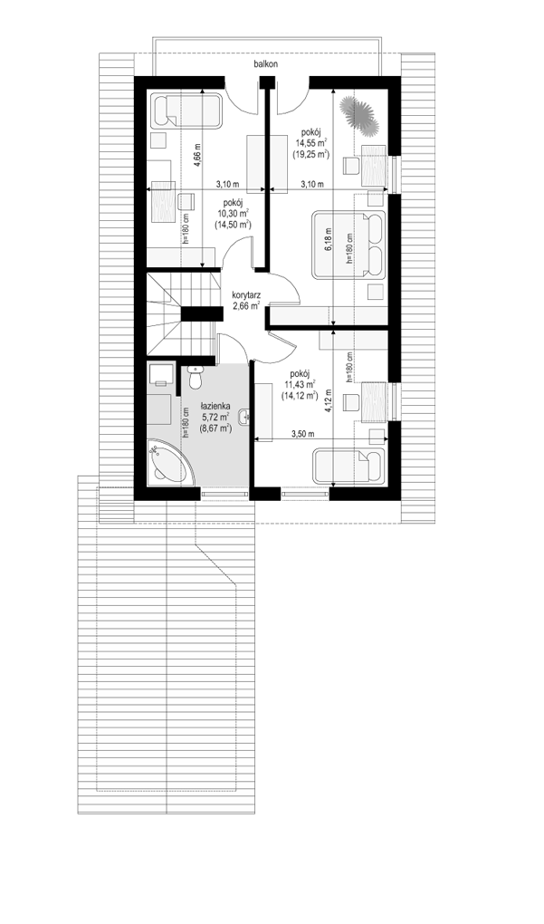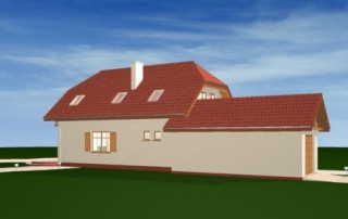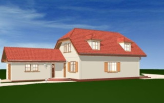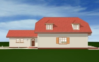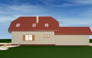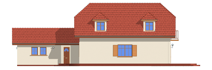Projekt domu Pierwszy Dom 2 to wersja z garażem wysuniętym przed front domu. Budynek doskonale pasuje na wąską działkę. Prosta konstrukcja i oszczędność formy sprawiają, że będzie niedrogi w budowie. Funkcjonalne wnętrze mieści: na parterze obszerny salon z półotwartą kuchnią, pomieszczenie gospodarcze, garaż i dodatkowy pokój, na poddaszu trzy sypialnie i łazienkę. Pracownia dysponuje wersją z garażem z boku, pod nazwa Pierwszy Dom 3, oraz bez garażu, pod nazwą Pierwszy Dom. Dostępna jest również wersja krótsza - bez dodatkowego pokoju na parterze, oraz projekt domu Pierwszy Dom 2 w lustrzanym odbiciu. Podstawowa wersja projektu występuje w wersji z dwoma oknami lub jednym oknem w ścianie szczytowej na poddaszu nad wejściem. Inne propozycje tej serii: projekt domu Pierwszy Dom 1, projekt domu Pierwszy Dom 2, projekt domu Pierwszy Dom 3.