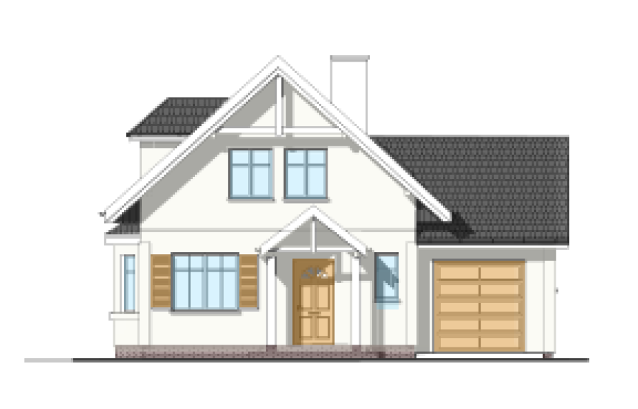 Wariant z wykuszem jadalni i z powiększonym garażem. Inne propozycje tej serii: projekt domu Pierwszy Dom 1, projekt domu Pierwszy Dom 2, projekt domu Pierwszy Dom 3.