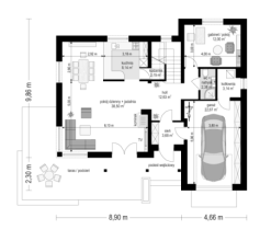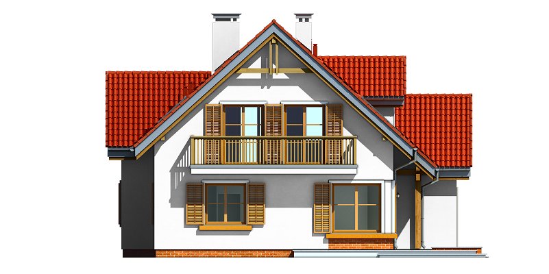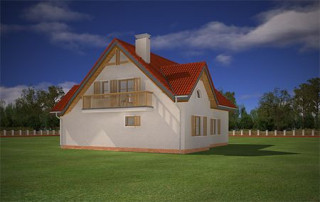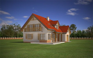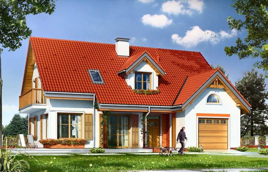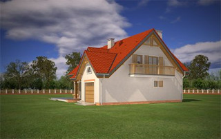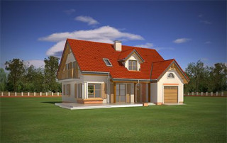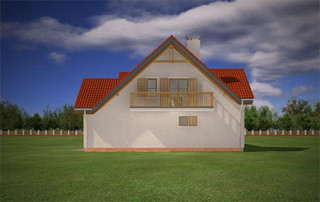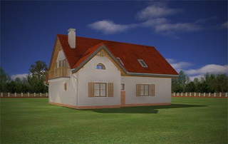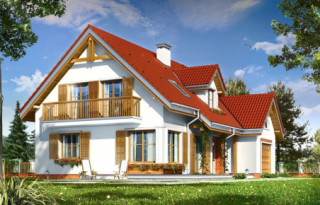 Projekt domu Pod Dębami to uroczy dom jednorodzinny, parterowy, z użytkowym poddaszem, przeznaczony dla 4- 5-osobowej rodziny. Dom Pod Dębami został zaprojektowany w taki sposób, aby nadawał się także na działkę o niekorzystnym ułożeniu ogrodu i wjazdu względem stron świata - szczególnie na parcelę z wjazdem od południa. Powierzchnia użytkowa projektu Pod Dębami to 150,89 m². Projekt domu Pod Dębami architektura i wnętrze Gotowy projekt domu Pod Dębami to budynek parterowy, z poddaszem użytkowym, przekryty dwuspadowym dachem z lukarnami z przodu i z tyłu. Rzut parteru domu ma formę litery "T", z zasadniczą prostokątną częścią i wystającymi dobudówkami: garażu i dodatkowego pokoju na parterze. Spokojna tradycyjna architektura budynku, z dużą ilością drewnianych elementów, oraz czerwonym dachem z dachówki i okładzinami klinkierowymi, tworzą przytulny nastrój odwołania do przedwojennych willi. Ładne przeszklenia okien i drzwi balkonowych w projekcie Pod Dębami stanowią urozmaicenie elewacji, a zarazem otwierają wnętrze budynku na otaczający ogród. Detale architektoniczne zastosowane w projekcie, jak: lukarny, łukowe okienka, podcień budynku wsparty na drewnianych słupkach – wszystkie te elementy pasują do siebie i tworzą spójną całość. Nie komplikują też zasadniczej konstrukcji budynku. Wnętrze projektu Pod Dębami podzielono na dwie części: na parterze budynku mamy część dzienną, oraz pomieszczenia gospodarcze i garaż, a na poddaszu część z sypialniami i łazienkami. Do projektu Pod Dębami wchodzimy przez wygodny przedsionek, połączony przejściem z garażem i kotłownią. Z holu plan prowadzi nas na boki: do przestrzeni dziennej - z salonem, jadalnią i kuchnią, oraz do dodatkowego pokoju - gabinetu, lub sypialni gościnnej, oraz łazienki. Z salonu drzwiami balkonowymi wydostaniemy się na zadaszony taras, a przez piękne narożne okno możemy podziwiać ogród, znajdujący się przed lub z boku domu. Reprezentacyjne schody projektu wiodą nas na poddasze, a tam znajdujemy trzy wygodne sypialnie, w tym sypialnię rodziców z osobną łazienką (właściwie pokojem kąpielowym) i garderobą, oraz sypialnie dziecięce z drugą łazienką. Pomieszczenia na poddaszu budynku, mimo skosów są bardzo przestronne i komfortowe. Pracownia MGProjekt posiada wersję odbicia lustrzanego projektu Pod Dębami.