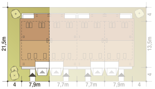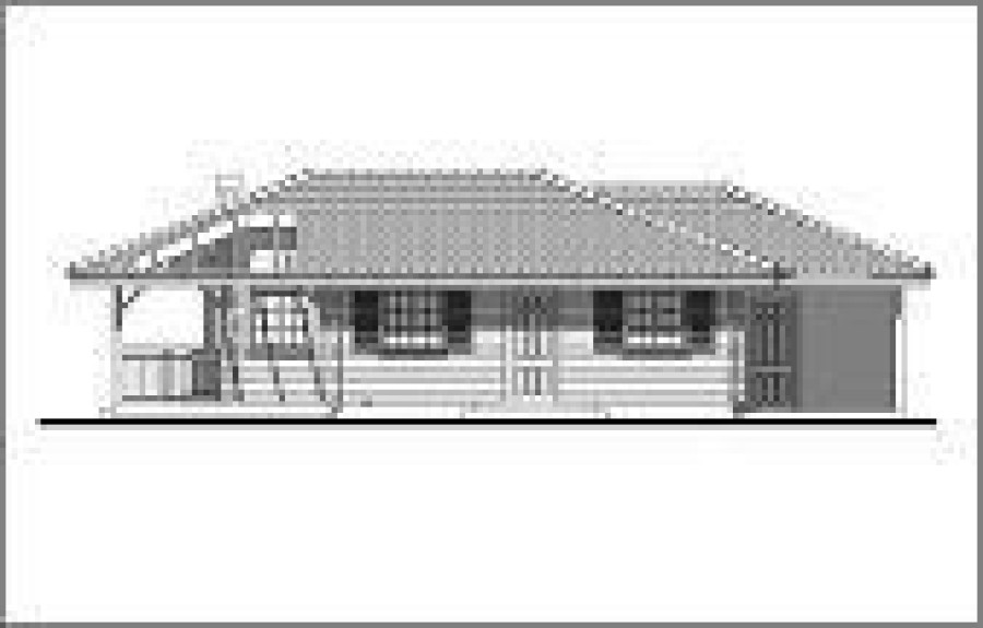 Wersja drewniana z bali z wiatą garażową i pomieszczeniem gospodarczym.