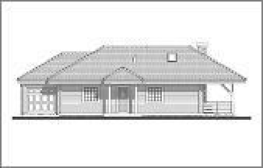 Większa wersja drewniana z bali z wiatą garażową i pomieszczeniem gospodarczym.
