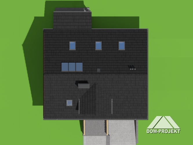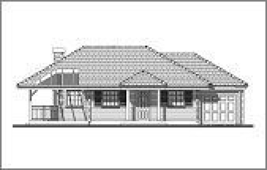 Wersja drewniana z bali z gankiem wejściowym, garażem i pom. gospodarczym.