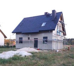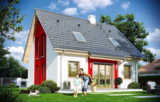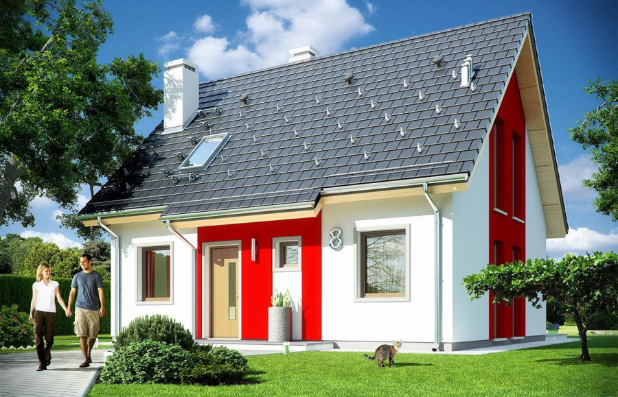 Projekt domu Przygoda to uroczy dom dla 4- 5-osobowej rodziny - parterowy, z poddaszem użytkowym, o zwartej prostokątnej bryle przykrytej dwuspadowym dachem. Prosta elegancja domu i jego funkcjonalność idą w parze z energooszczędnością i nowoczesnością. Kształt domu, jego proporcje od razu przywołują obraz „małego białego domku”, takiego domku z kominem - z dziecięcych wyobrażeń. Budowa domu to wielka przygoda. Dlaczego nie zdecydować się na nią z naszą „Przygodą” ;). Proporcjonalna symetryczna bryła wpasuje się w każde otoczenie. Nowoczesne materiały i kolorystyka budynku dodają domowi sznytu. Wnętrze domu mieści w sobie pięć pokoi, dwie łazienki i oddzielną kotłownię - wiele, jak na niespełna stumetrową powierzchnię. Na parterze mamy przestrzeń dzienną połączonego salonu, holu i kuchni, oraz dodatkowy pokój. Na poddaszu natomiast – trzy sypianie z łazienką. Projekt domu Przygoda ma wnętrze ustawne i funkcjonalne. Konstrukcja domu jest bardzo prosta i przejrzysta - będzie łatwa w budowie i – co najważniejsze - rozsądna kosztowo. Bardzo dobre ocieplenia ścian, podłóg i dachu powodują, że dom jest energooszczędny. W łatwy sposób można go dostosować do standardu NF40. Powierzchnia domu pozwala na zaliczenie projektu do programu MDM. Zapraszamy również do obejrzenia drugiego projektu tej serii: projekt domu Przygoda 2.