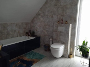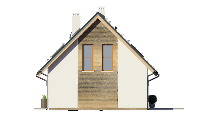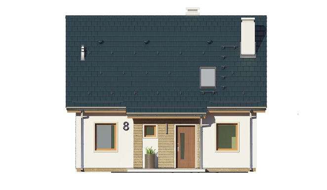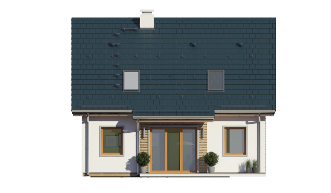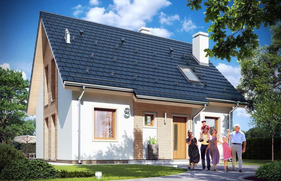 Projekt domu Przygoda 2 to sympatyczny dom dla 4- 5-osobowej rodziny - parterowy, z poddaszem użytkowym, o zwartej prostokątnej bryle przykrytej dwuspadowym dachem. Prosta elegancja domu i jego funkcjonalność idą w parze z energooszczędnością i nowoczesnością. Kształt domu, jego proporcje od razu przywołują obraz „małego białego domku”, takiego domku z kominem - z dziecięcych wyobrażeń. Budowa domu to wielka przygoda. Dlaczego nie zdecydować się na nią z naszą „Przygodą” ;). Proporcjonalna symetryczna bryła wpasuje się w każde otoczenie. Nowoczesne materiały i kolorystyka budynku dodają domowi sznytu. Wnętrze domu mieści w sobie cztery pokoje, dwie łazienki i oddzielną kotłownię - wiele, jak na niespełna stumetrową powierzchnię. Na parterze, w tej wersji projektu mamy mamy dużą przestrzeń dzienną połączonego salonu, holu i kuchni. Na poddaszu natomiast – trzy sypianie z łazienką. Projekt domu Przygoda 2 ma wnętrze ustawne i funkcjonalne. Konstrukcja domu jest bardzo prosta i przejrzysta - będzie łatwa w budowie i – co najważniejsze - rozsądna kosztowo. Bardzo dobre ocieplenia ścian, podłóg i dachu powodują, że dom jest energooszczędny. W łatwy sposób można go dostosować do standardu NF40. Niewielka powierzchnia użytkowa domu pozwala na zaliczenie projektu do programu MDM. Zapraszamy również do obejrzenia pierwszego projektu tej serii: projekt domu Przygoda.