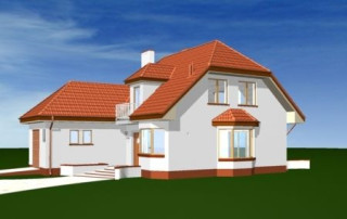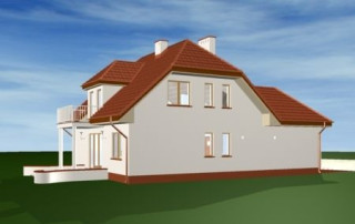 Projekt domu Przytulny to prawdziwy podmiejski dom, siedziba dla szczęśliwej rodziny. Dom emanuje spokojem, statecznością, ale również radością i energią - wszystko dzięki połączeniu tradycyjnych elementów architektury z nowoczesnością. Bryła budynku z wysuniętym do przodu garażem doskonale wkomponuje się w wąską działkę. Wnętrze projektu domu zaplanowano oddzielając część dzienną na parterze (gdzie oprócz salonu znajduje się również zaplecze techniczne i gabinet oraz łazienka) od sypialni na poddaszu. Na piętrze znajdują się trzy wygodne sypialnie, garderoba i łazienka. W projekcie domu Przytulny każda sypialnia ma wyjście na balkon. Dostępna jest również wersja projektu domu Przytulny w odbiciu lustrzanym.