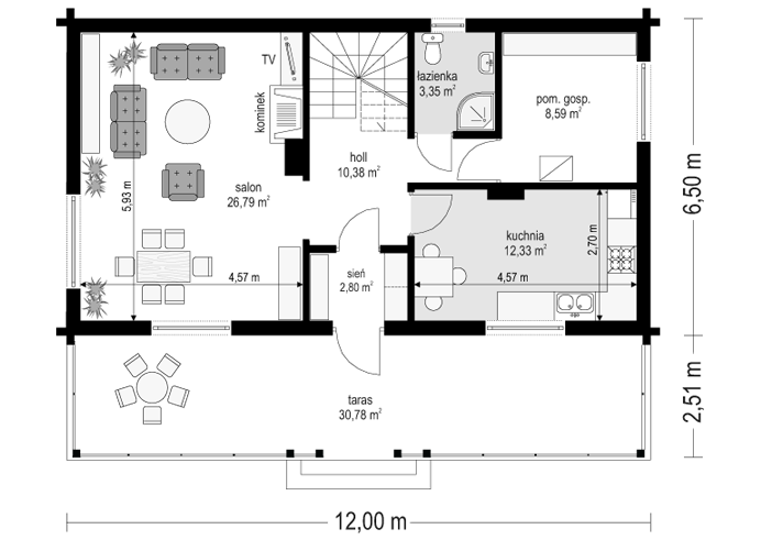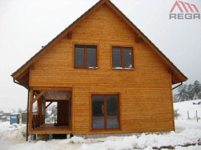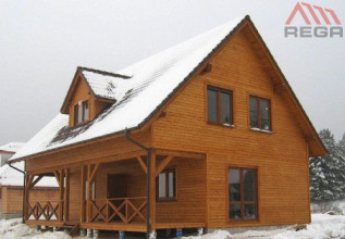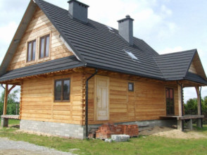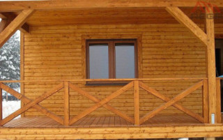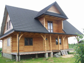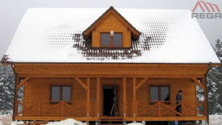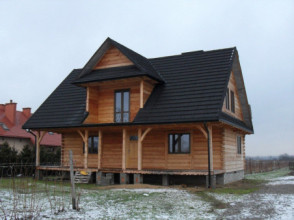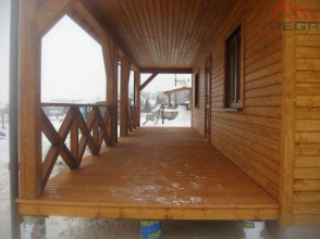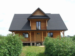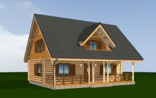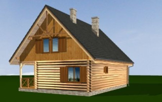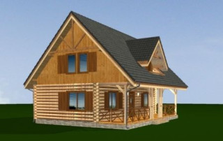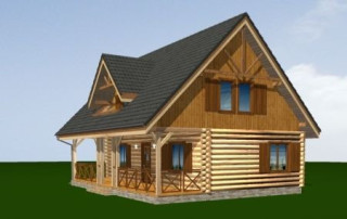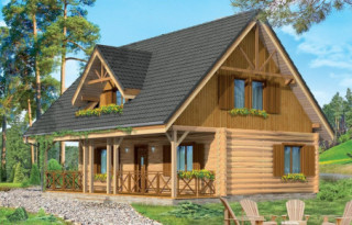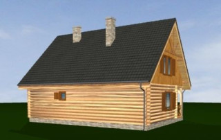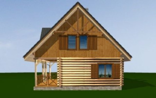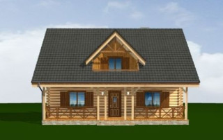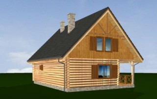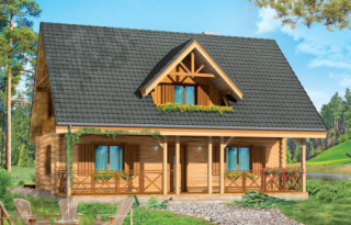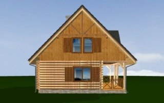 Projekt domu Ranczo to budynek z litego bala, ocieplony od wewnątrz. Projekt domu parterowego z poddaszem użytkowym, przeznaczony dla 4-6 osób. Projekt domu Ranczo może być wykorzystany jako całoroczny budynek mieszkalny, ale również jako dom letniskowy. Budynek, dzięki swojej prostocie, przypomina wiejskie chaty. Jednocześnie jego architektura nie nawiązuje do żadnego ludowego regionalnego wzoru, forma jest więc uniwersalna. Duży dwuspadowy dach z okapami, osadzona na środku frontowej elewacji lukarna z balkonikiem, weranda o szerokości całego domu podparta na słupach z zastrzałami - te elementy łatwo skojarzą się z sielskim wiejskim siedliskiem. Dom skierowano w jedną stronę - elewacja frontowa jest jednocześnie ogrodową. Przy działkach rekreacyjnych to często spotykany układ. Podział wnętrza domu jest również bardzo tradycyjny i przypomina stare wiejskie chaty lub dworki: środkowa część to hol z przedsionkiem i schodami, po bokach natomiast mieszczą się salon i kuchnia, oraz pomieszczenie gospodarcze. Wielki zadaszony taras - weranda z przodu da cień przed słońcem i schronienie przed deszczem. Na poddaszu zaprojektowano trzy sypialnie i bardzo ładną łazienkę. Ponadto z holu można wyjść na malowniczy balkonik. Projekt domku Ranczo dostępny jest też w odbiciu lustrzanym.