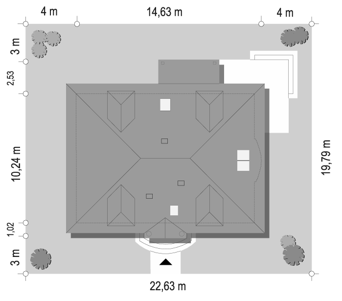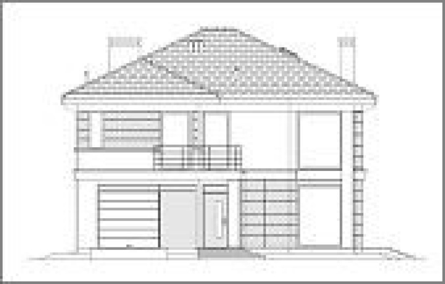 Wariant wydłużony projektu ze zmienionym układem pomieszczeń na piętrze, powiększona antresola.
