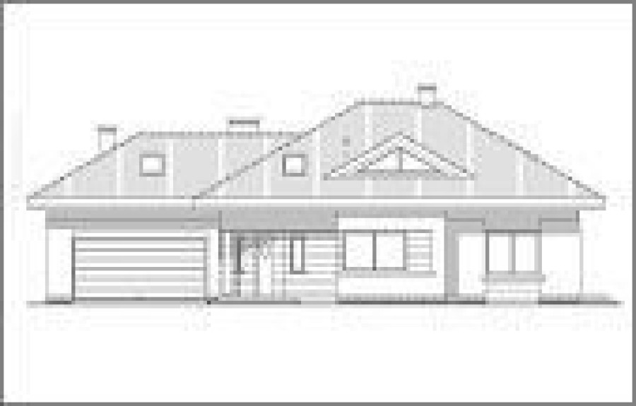 Wariant z dwustanowiskowym garażem, przeniesioną kotłownią i kominem za garaż. Zmieniony układ okien, podniesiona ścianka kolankowa o 50 cm, zagospodarowany strych na poddasze użytkowe.