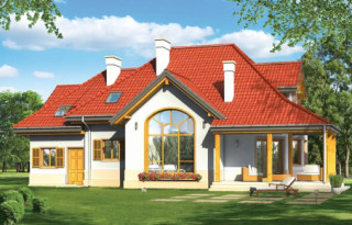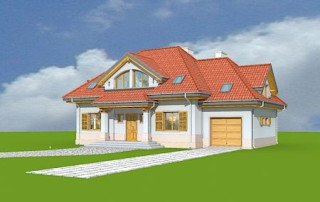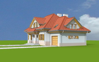 Projekt domu Rubin 2 to wariantowa wersja popularnego projektu Rubin - tym razem zmniejszona, z jednostanowiskowym garażem. Projekt domu przeznaczony jest dla 4- 5-osobowej rodziny. Parterowa bryła z poddaszem użytkowym, składa się z części mieszkalnej i dobudowanego z boku garażu. Całość przekryta jest wielospadowym dachem, z dużymi lukarnami na każdej elewacji. Spokojna podmiejska architektura domu, z ciekawymi detalami, jak wykusze, ganki z kolumnami, czy łukowe okna, łączy się z funkcjonalnie zaprojektowanym wnętrzem budynku. Szczególną atrakcją bryły jest duża lukarna frontowa z gankiem wejściowym i kolumnami, duży podcień ogrodowy, gdzie pod zadaszeniem można schronić się przed deszczem lub upalnym słońcem, oraz wielkie dwukondygnacyjne okno salonu, otwierające wnętrze na ogród. Wnętrze parteru to przede wszystkim otwarta przestrzeń dzienna, z salonem, jadalnią i holem. Salon częściowo otwarty jest na antresolę poddasza, dzięki czemu domownicy będą mogli cieszyć się zwiększoną przestrzenią pokoju dziennego. Na parterze zaplanowano też kuchnię, dodatkowy pokój - gabinet lub na przykład sypialnię gościnną, oraz kotłownię i garaż z zapleczem ogrodowym. W projekcie domu Rubin 2, na poddaszu zmieszczono cztery sypialnie z garderobami i szafami wbudowanymi, dużą łazienkę i pralnię-suszarnię. Z holu - antresoli na poddaszu otwiera się przez wysokie okno imponujący widok na salon pod spodem i ogród. Pracownia MGProjekt posiada też projekt domu Rubin w odbiciu lustrzanym i inne jego wersje: podstawowy projekt domu Rubin, projekt domu Rubin 2 oraz projekt domu Rubin 3.