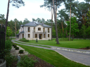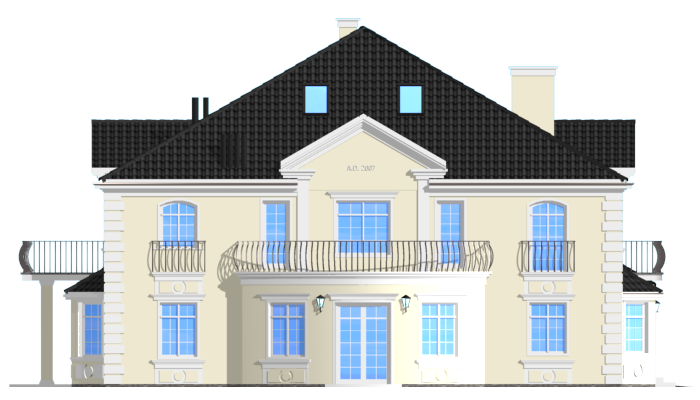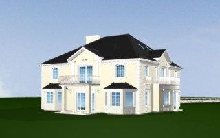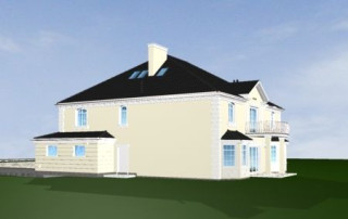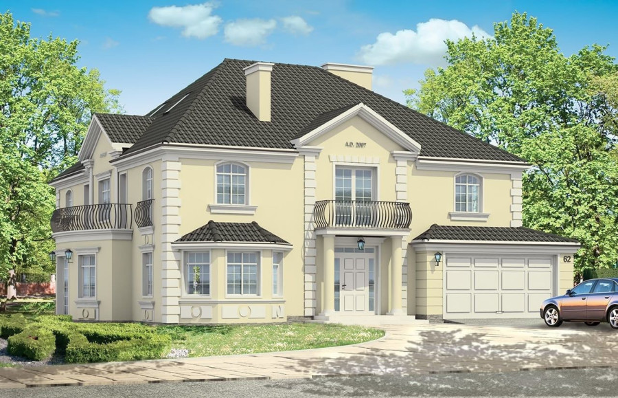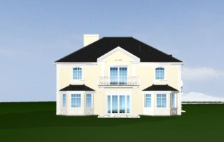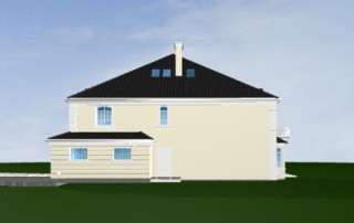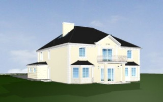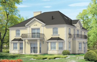 Projekt domu Sokół to reprezentacyjna piętrowa rezydencja, dająca wrażenie wygody i luksusu. Budynek przykryty wielospadowym dachem, z wieloma elementami ozdobnymi. Wnętrze budynku zaprojektowano wokół dużego holu z eleganckimi zabiegowymi schodami. Część wejściowa to sień z szatnią i spiżarnią po bokach, zapewniającymi bezpośredni dostęp do garażu i kuchni. Część dzienna jest wzbogacona o gabinet-bibliotekę i pokój rekreacyjny. W łazience obok można umieścić saunę. Ponieważ willę Sokół przeznaczono dla licznej rodziny na piętrze zaprojektowano aż pięć pokoi, w tym sypialnię rodziców z odrębną łazienką i garderobą. Z piętra dodatkowo można dostać się schodami na strych, który może być wariantowo zaadaptowany na jednoprzestrzenne studio. Wszystko to tworzy harmonijną całość. Dom pomimo niemałych wymiarów mieści się na dość wąskiej działce. Pracownia posiada odbicie lustrzane projektu domu Sokół. Zapraszamy!