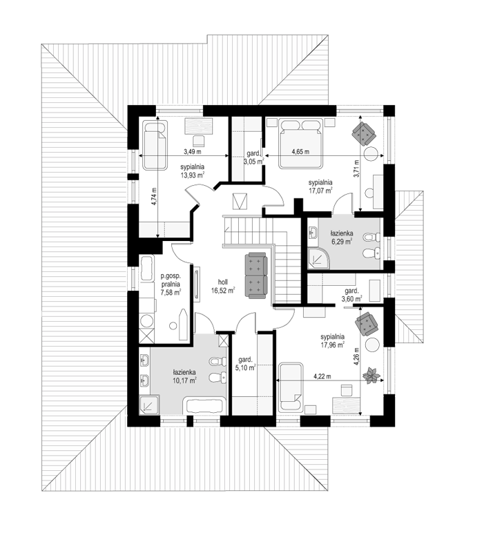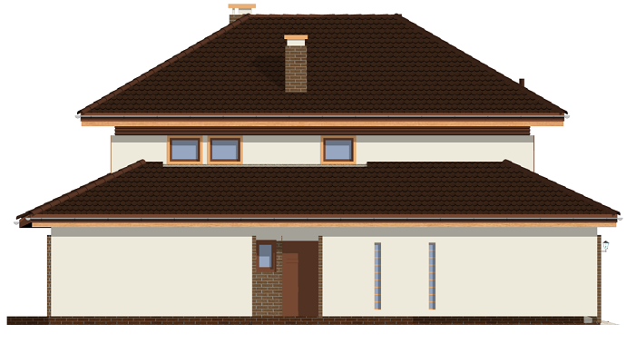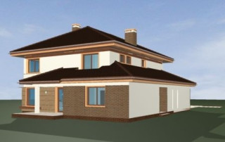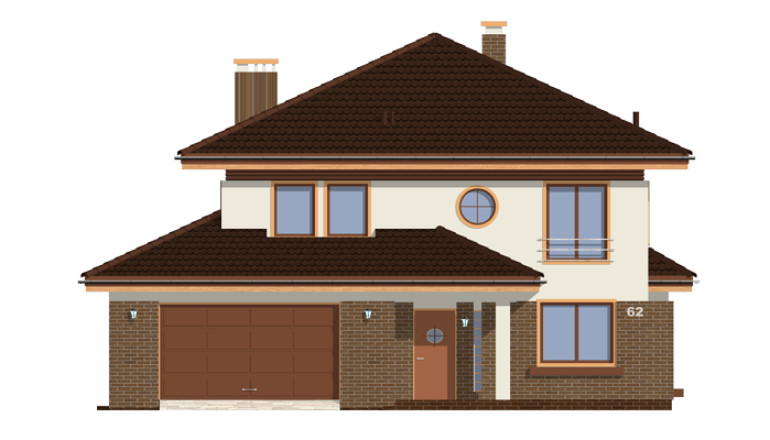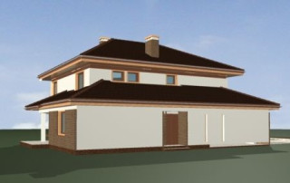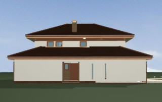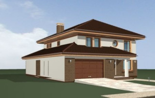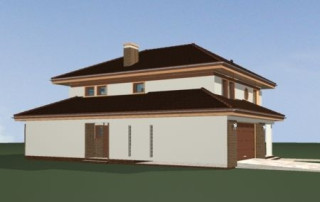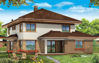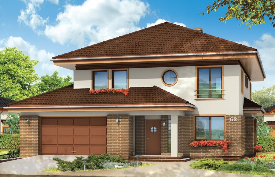 Projekt domu Sonet to elegancka, piętrowa willa, o prostokątnej bryle, z wciętym z boku garażem przekrytym daszkiem. Podział elewacji na poziome pasy obniża wizualnie budynek, przez co wydaje się bliższy ludzkiej skali. Podcienie - wejściowy i ogrodowy, wykusz jadalni, okrągłe okno w elewacji frontowej - urozmaicają sylwetkę domu. Wnętrze domu Sonet zaprojektowano w taki sposób, aby podzielić willę na przestrzeń dzienną na parterze i nocną na piętrze. Na parterze zaplanowano też dodatkowy pokój z łazienką, garaż i kotłownię. Domek mimo niedużej wielkości jest bardzo pojemny i funkcjonalny, ma wiele pokoi i pomieszczeń pomocniczych. Pracownia dysponuje również projektem domu Sonet w odbiciu lustrzanym.