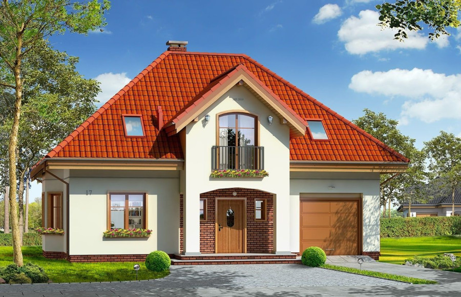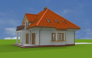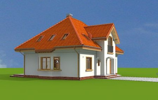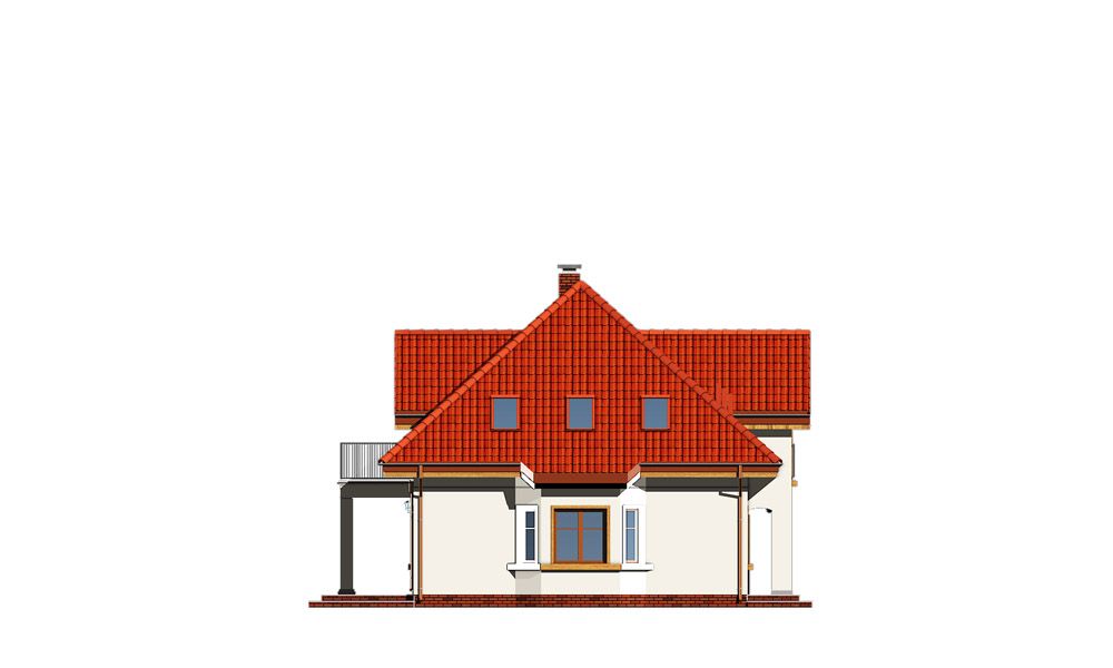 Projekt domu Stokrotka to uroczy budynek o prostej, klarownej bryle. Domek jednorodzinny przeznaczony dla 4- 5-osobowej rodziny. Projekt domu Stokrotka zbudowany jest na planie prostokąta. Rzut parteru i poddasza zwieńczony jest czterospadowym dachem z symetrycznie ustawionymi lukarnami od frontu i od strony ogrodu. Frontowa lukarna połączona jest z podcieniem wejściowym na kolumienkach. Od strony ogrodu zaprojektowano częściowe zadaszenie tarasu dużym balkonem. Urok domu to jego prostota i właściwe proporcje, do tego ciekawe detale, oraz funkcjonalnie zaprojektowane, przemyślane wnętrze. Na parterze mieszkania, zaprojektowano obszerny pokój dzienny z centralnie usytuowanym kominkiem, oraz dużymi przeszkleniami na taras i ogród. Salon w Stokrotce łączy się częściowo z półotwartą kuchnią przez aneks jadalny z wykuszem. Bardzo ładny hol z reprezentacyjnymi schodami na poddasze dopełnia wnętrze parteru. Dodatkowo w projekcie, przewidziano jeszcze część gospodarczą z garażem i kotłownią. Na poddaszu zaprojektowano trzy sypialnie z garderobami lub szafami wbudowanymi, łazienkę i dodatkowy pokój - gabinet lub czwartą sypialnię. Pracownia dysponuje wersją odbicia lustrzanego projektu domu Stokrotka.