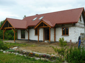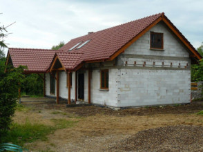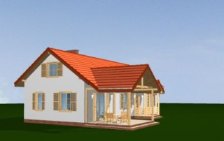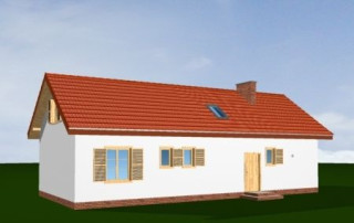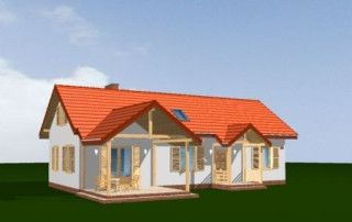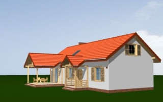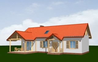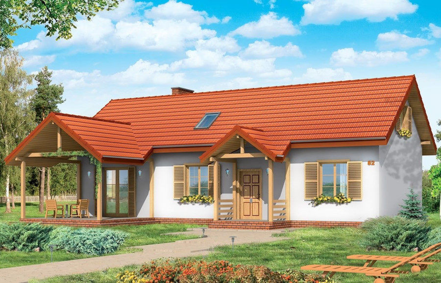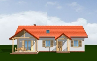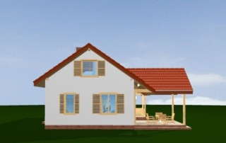 Projekt domu Szczygieł to domek jednorodzinny parterowy, z poddaszem użytkowym. Dom Szczygieł może służyć jako dom jednorodzinny całoroczny, jak również jako budynek letniskowy. Prostokątna bryła została przekryta dwuspadowym dachem poddasza. Do niej dobudowano podcień ogrodowy - z wyjściem z salonu, oraz podcień - ganek wejściowy. Dom doskonale nadaje się na działkę z wejściem od południa lub zachodu - tam, gdzie ogród i wejście są po tej samej stronie domu. Projekt domu Szczygieł ma prostą konstrukcję - jest łatwy i niedrogi w budowie. We wnętrzu na parterze zaplanowano salon z częścią jadalną, otwartą kuchnię - połączoną z pomieszczeniem gospodarczym, łazienkę z toaletą, oraz dwa pokoje, które mogą być wykorzystane jako sypialnie, bądź np. jako gabinet. Na poddaszu zaprojektowano dwie sypialnie i łazienkę. Poddasze można wykończyć w drugim etapie budowy. Projekt domu Szczygieł dostępny jest też jako odbicie lustrzane.