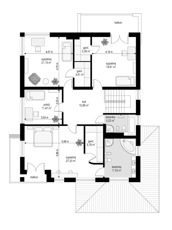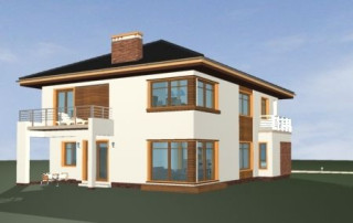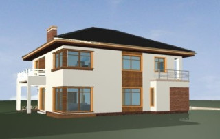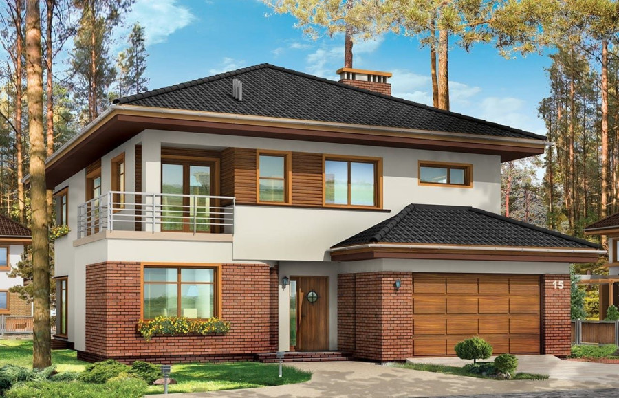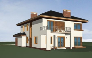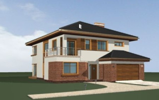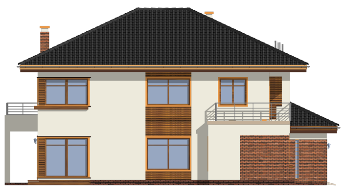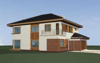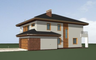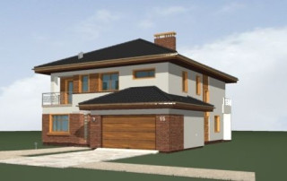 Projekt domu Topaz to elegancki, piętrowy dom jednorodzinny. Budynek o nowoczesnej acz nie przesadzonej architekturze. Projekt domu Topaz występuje w dwóch wersjach wariantowych, ze zróżnicowaną częścią frontową. Bryła budynku jest urozmaicona kilkoma użytymi materiałami, wykuszami i daszkami. Wejście do mieszkania zostało zaakcentowane podcieniem z łukową boczną ścianą z klinkieru. Wnętrze jest uniwersalnym, wygodnym mieszkaniem dla rodziny 4- 6-osobowej. Składa się z czterech sypialni na piętrze, z których każda ma swoją garderobę. W sypialni rodziców zaprojektowano dodatkową łazienkę. Na parterze do dyspozycji mamy salon połączony z jadalnią i holem, kuchnię i dodatkowy pokój - gabinet. W domu przewidziano również garaże i przestrzeń gospodarczą. Część ogrodowa domku to duże przeszklenia - otwarcia z salonu na otaczającą dom działkę. Pracownia dysponuje też projektem Topaz w odbiciu lustrzanym.