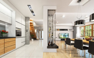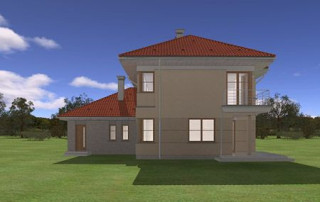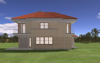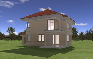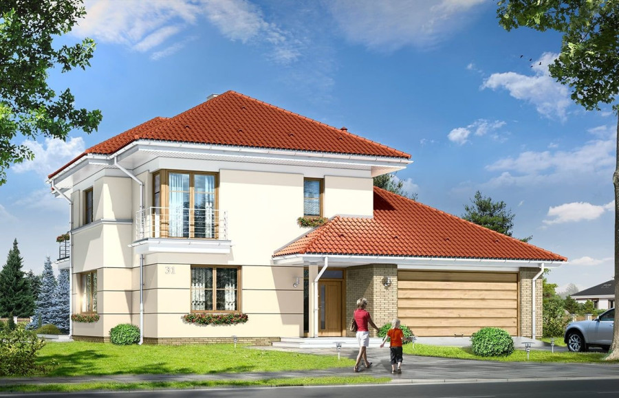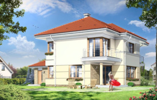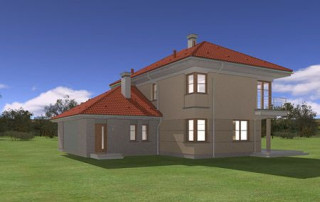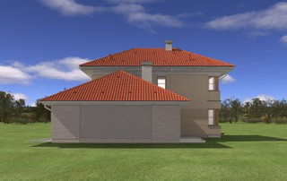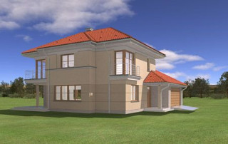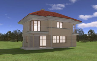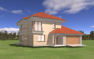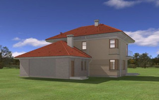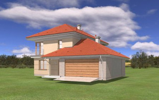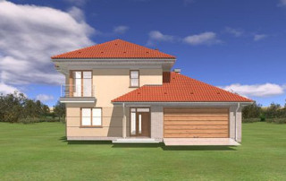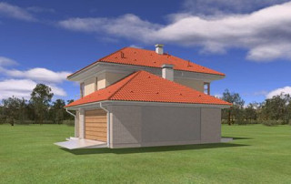 Projekt domu Turkus jest piętrowym budynkiem, przystosowanym dla 4- 5-osobowej familii. Domek przekryty został czterospadowym dachem, z dobudowanym garażem. Dom zaprojektowano jako elegancką, łączącą w sobie nowoczesność i tradycję niedużą miejską willę. Budynek ma zwartą energooszczędną bryłę, dość prostą konstrukcję i jest łatwy w budowie. Górna kondygnacja jest piętrem - sypialnie nie mają więc "skosów". Połączenie klasycznego kształtu z ciekawymi detalami, takimi jak narożne okna, podcienie, wykusze, fragmenty ścian obłożone klinkierem, lub fragmenty boniowanej elewacji, tworzą spójną całość. Projekt domku Turkus jest jednocześnie unikalny i powściągliwy w swym wyrazie. Wnętrze Turkusa podzielono na część dzienną na parterze, oraz sypialnie na piętrze. Parter to jednoprzestrzenne wnętrze salonu, aneksu jadalnego, holu i częściowo otwartej kuchni. Zaplanowano tu również dodatkowy pokój (np. gabinet) i zaplecze techniczne - garaż wraz z kotłownią. Na parterze na uwagę zasługują pięknie wyeksponowane schody na piętro i centralnie ustawiony w salonie kominek. Na piętrze zaprojektowano trzy sypialnie z łazienkami, w tym apartament rodziców z własną garderobą, łazienką i balkonem z widokiem na ogród. Dodatkowo można zagospodarować strych nad garażem - dostępny z holu piętra. Pracownia posiada także odbicie lustrzane projektu domu Turkus.